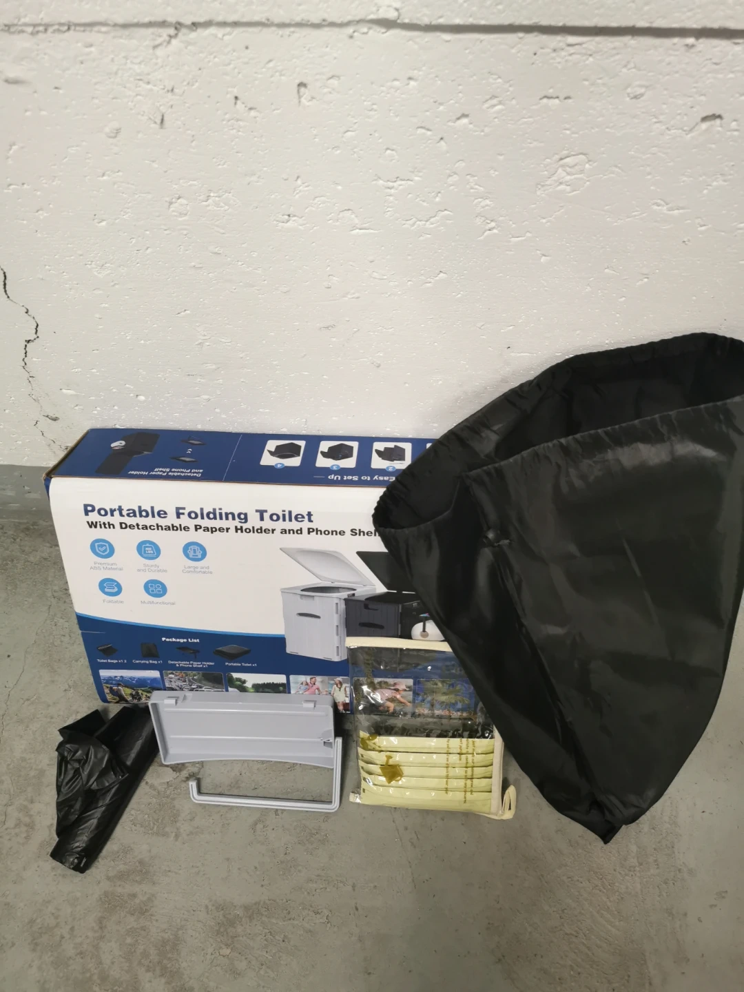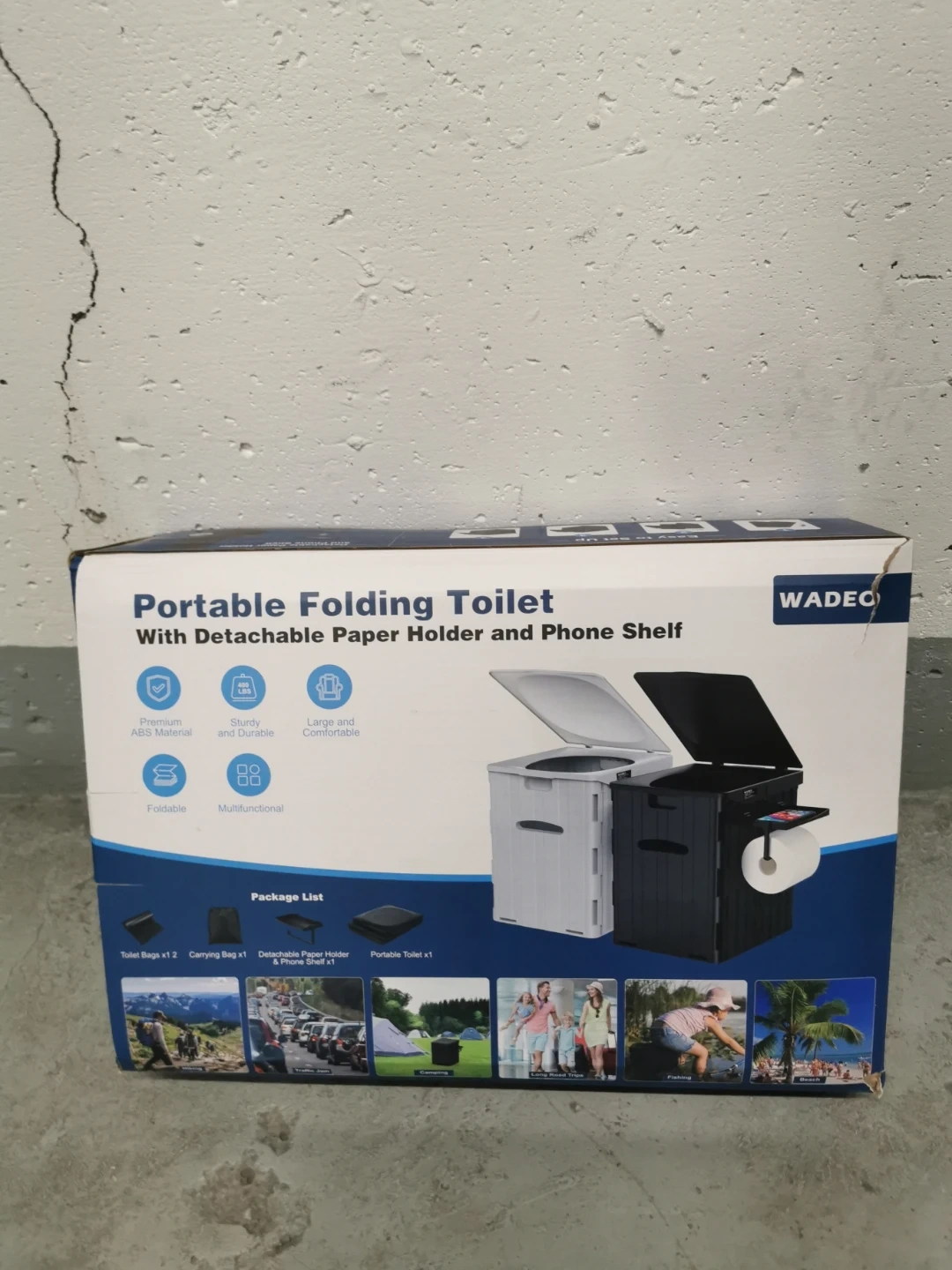 Selling a brand new WADEO Portable Folding Toilet, still in its original box! It comes with a detachable paper holder and phone shelf. It's designed to be sturdy and stable, and it's also foldable for easy storage and transport. The package list includes: