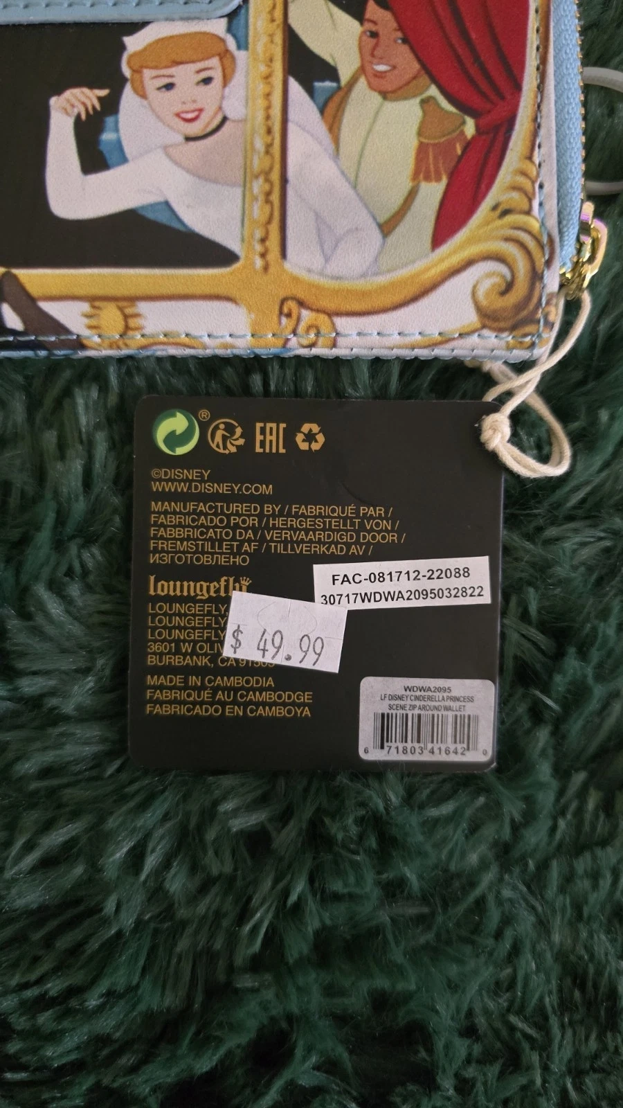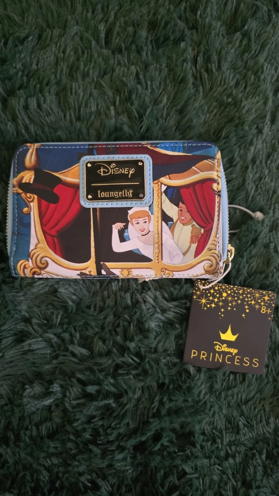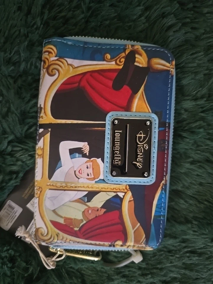 New Loungefly wallet featuring Cinderella Princess Scenes with Royal Coach and Mice. Size: 6” X 4”. Multicolor. Disney franchise. Made in China.