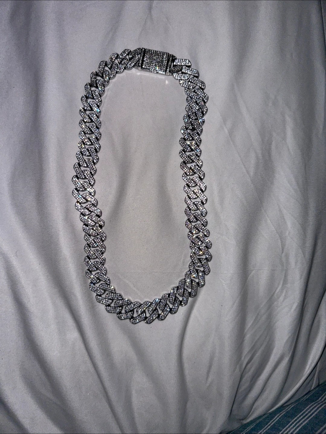 10Iced Chain - 21mm ( VVS Moissanite Sterling Silver Cuban Link Chain ) Cuban Link Iced out Chain, Shines Brighter than Diamond. Only Interested can DM please.