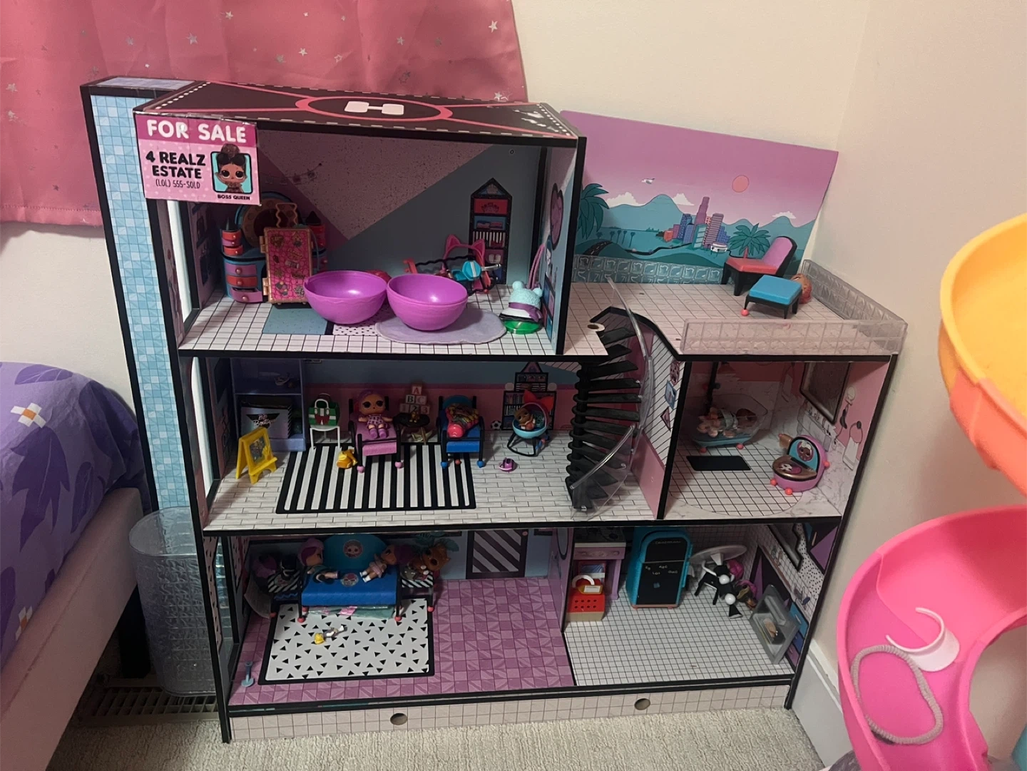 This LOL Surprise dollhouse is complete with furniture and accessories. It features multiple levels and rooms for imaginative play. It's a great gift for kids who love LOL Surprise dolls!