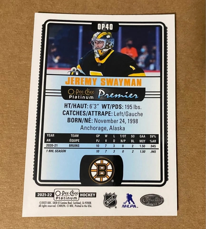 Buy & Sell2021-22 OPC Platinum Premier Jeremy Swayman RC Card - Bruins2021-22 OPC Platinum Premier Jeremy Swayman RC Card - Bruins$20Each card will come in a penny sleeve and top loader. Please check out my other cards. The more you buy, the better price you get.WHERE TO MEETHomeView MapSELLERverifiedTylenWolseley993 reviews0 chats·0 favorites·5 viewsSEND CHAT TO SELLERHi Tylen! I’m interested in your listing.Hi Tylen! I’m interested in your listing.Get the Karrot app to chatSign In to chat