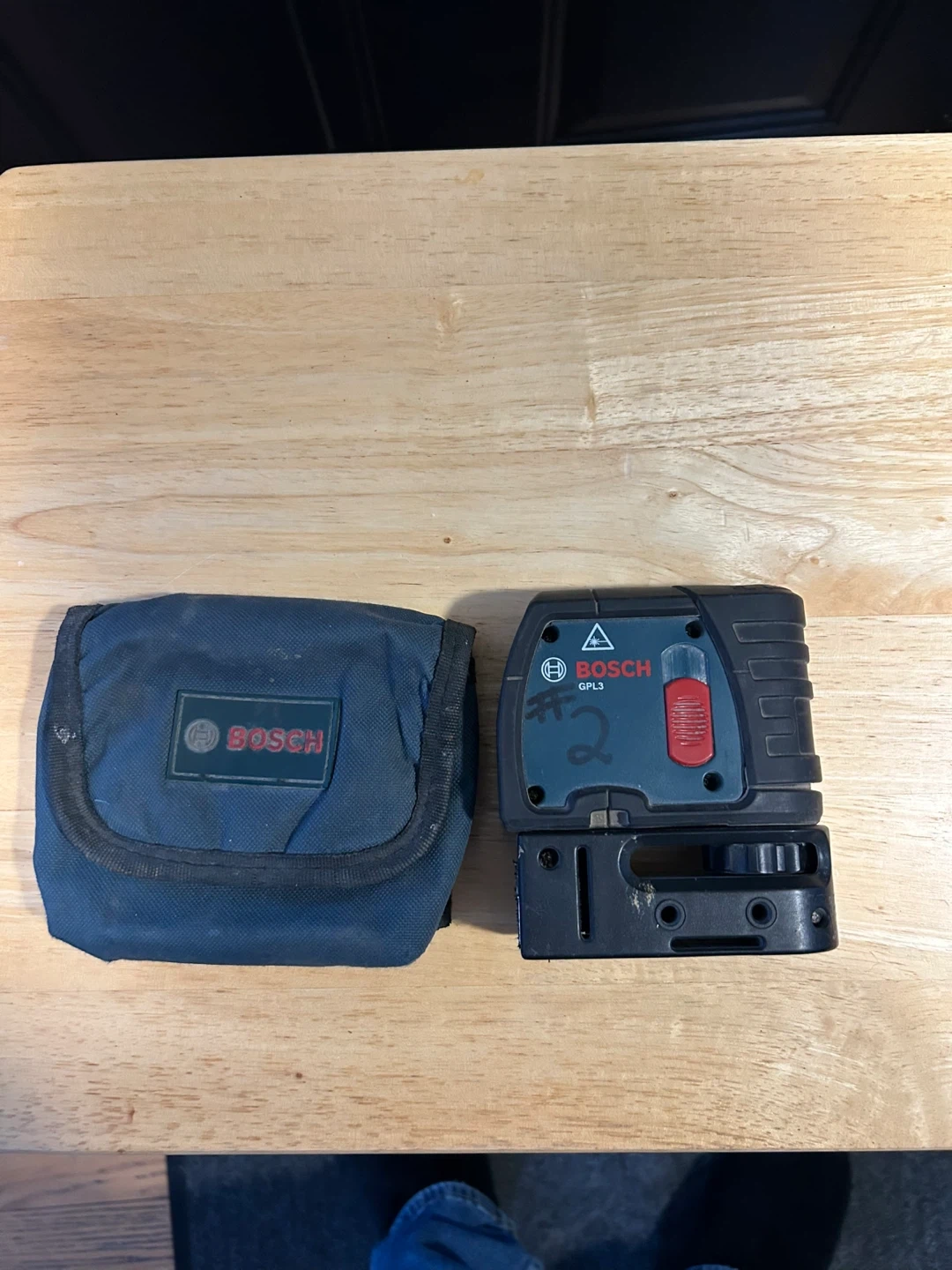 Buy & SellBosch GPL3 Laser Level with CaseBosch GPL3 Laser Level with Case$40Bosch GPL3 laser level. Comes with its original carrying pouch. Great for any leveling tasks around house or job site.WHERE TO MEETCheck LocationView MapSELLERKimFalconridge25728 reviews0 chats·0 favorites·2 viewsSEND CHAT TO SELLERHi Kim! I’m interested in your listing.Hi Kim! I’m interested in your listing.Get the Karrot app to chatSign In to chat