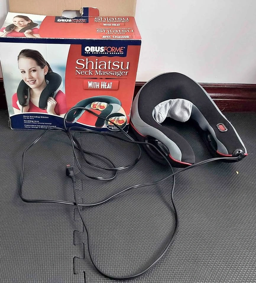 Used only a few times. The box is not in perfect condition, but the massager is fully functional. It offers deep kneading and has a heat feature that gets quite warm for a good massage. Pickup is available at Tower Hill Plaza on Bathurst in Richmond Hill.