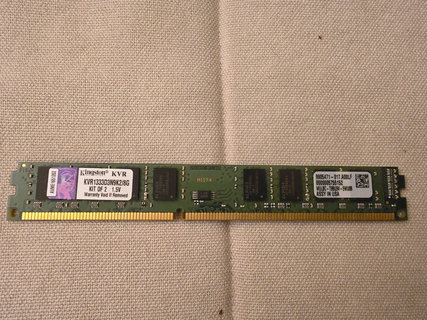 Kingston KVR1333D3N9K2/8G Capacity: 4GB (single stick)