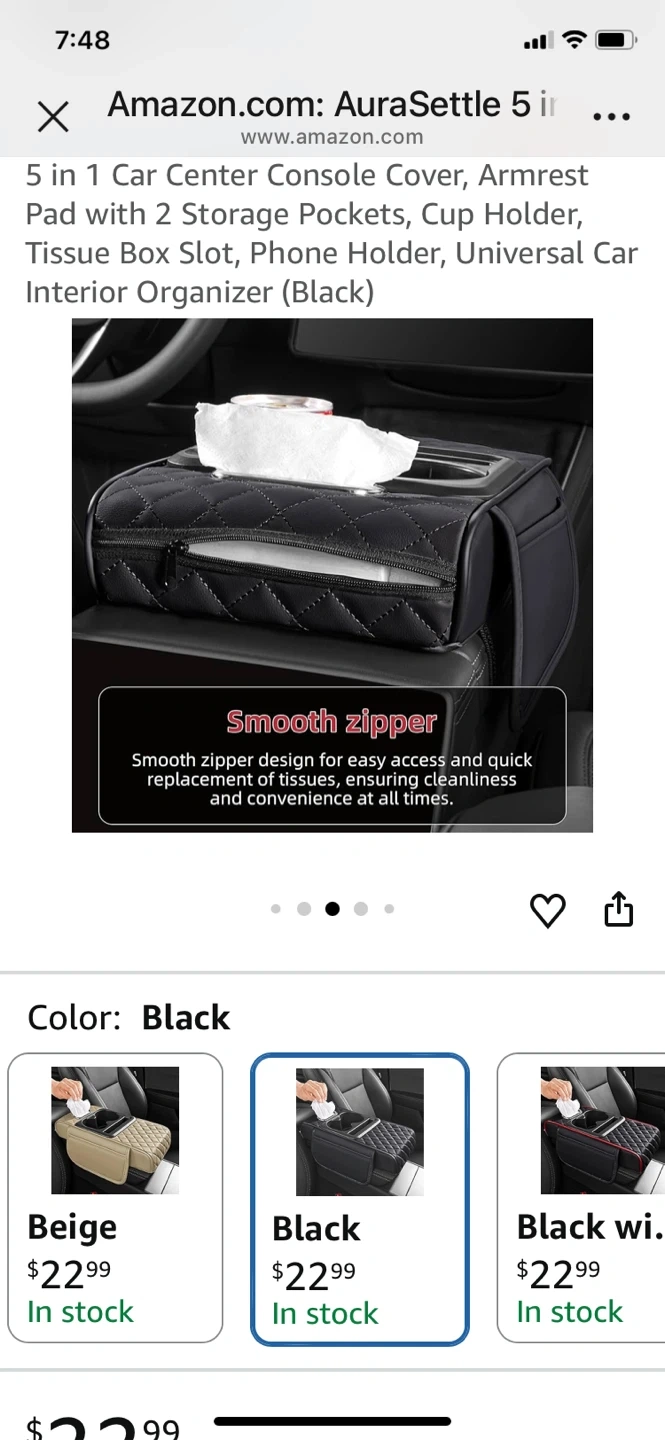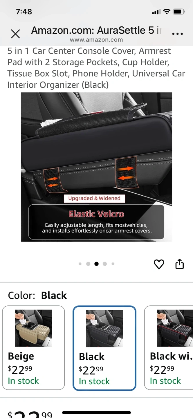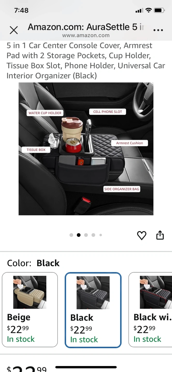 This 5-in-1 car organizer pad fits over your center console and armrest. It features 2 storage pockets, a cup holder, tissue box holder, and phone holder. Made from durable material, it's designed for easy installation with elastic velcro. Great for keeping your car tidy!