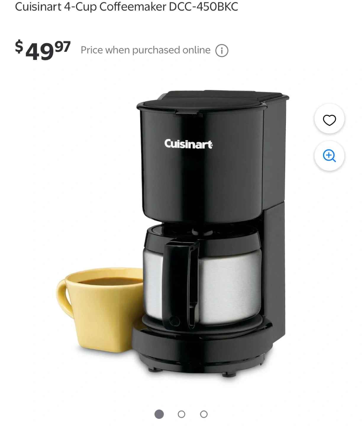 Selling a Cuisinart 4-Cup Coffeemaker, model DCC-450BKC. It's perfect for small spaces and brews just the right amount of coffee. I bought this for $49.97.