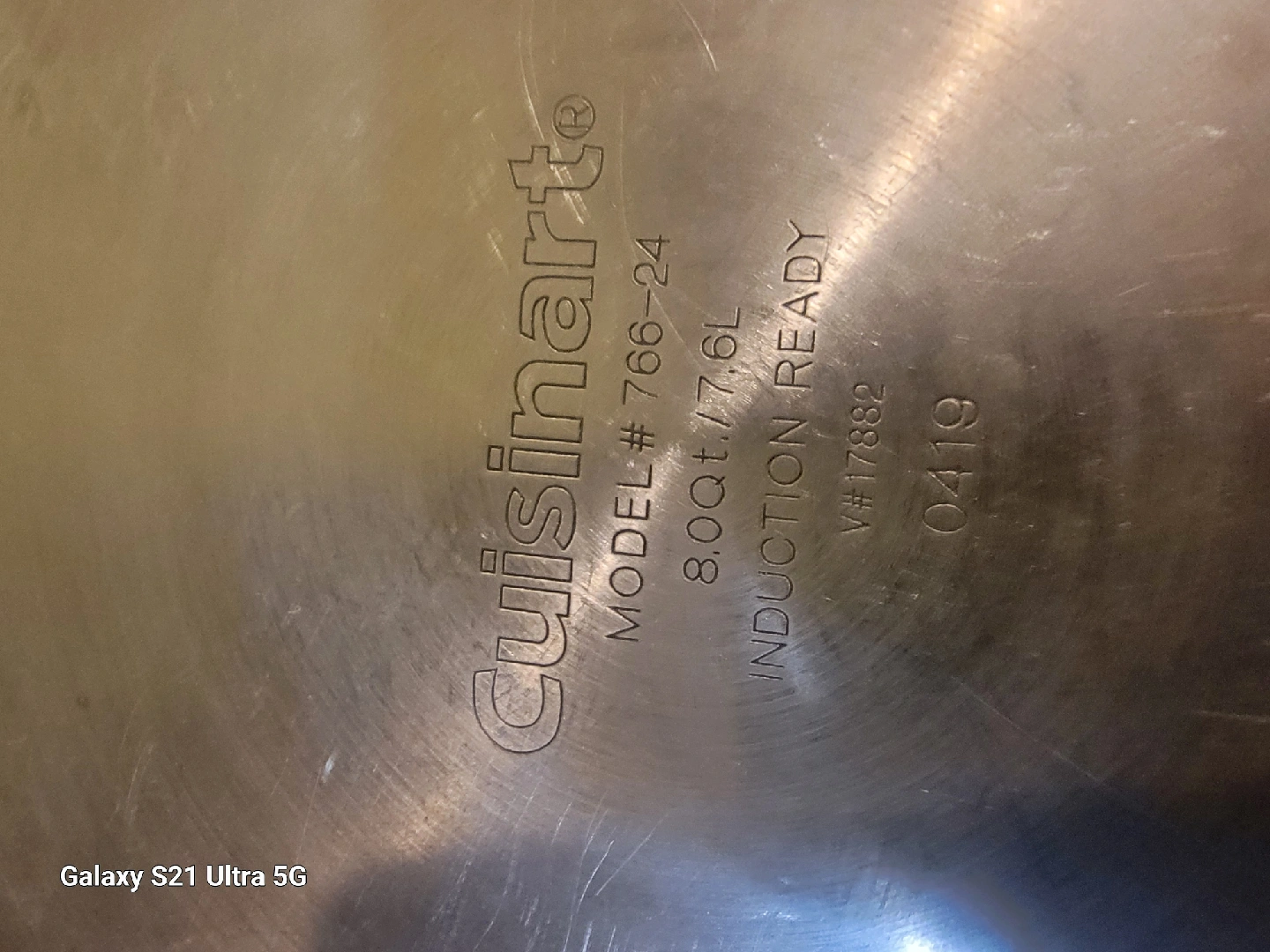 73Selling a Cuisinart stock pot in great condition! It's made of stainless steel and has a capacity of 8 quarts (7.6L). This pot is induction ready and perfect for making soups, stews, or stocks