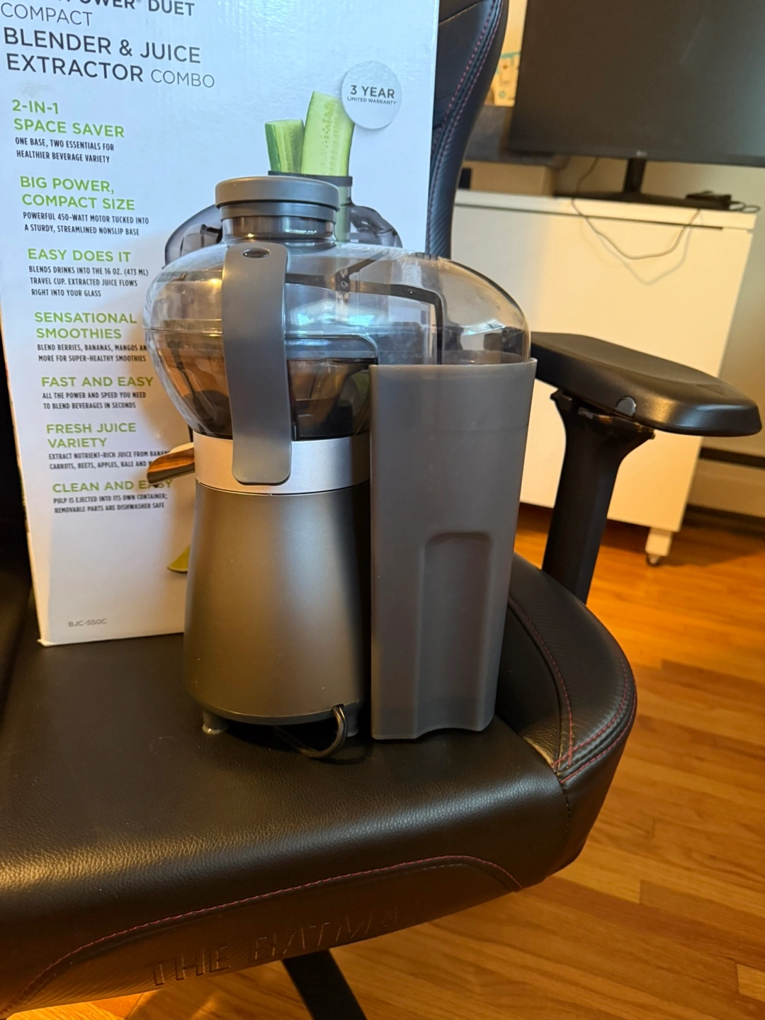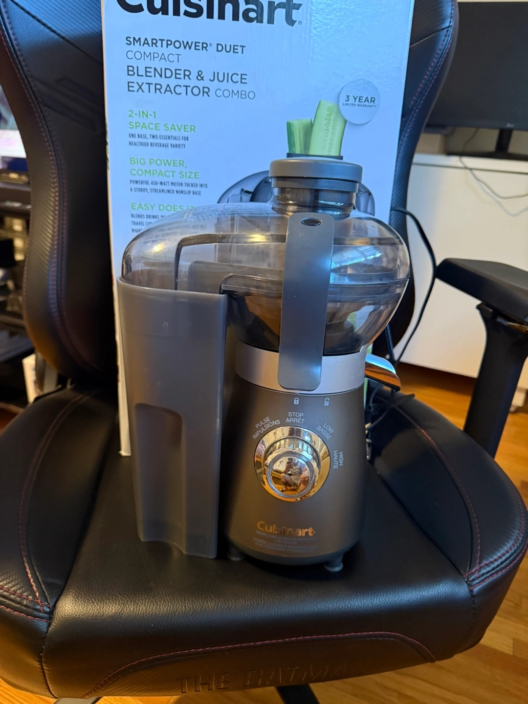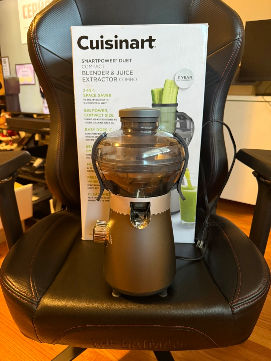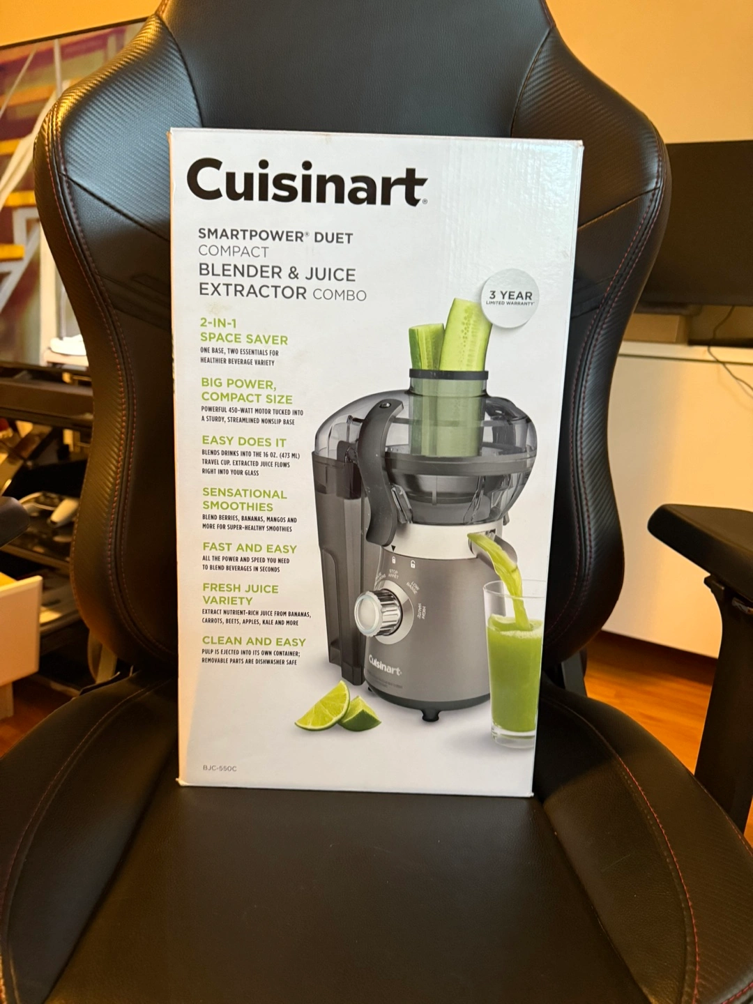 This is a used Cuisinart SmartPower Duet Compact Blender & Juice Extractor Combo, perfect for small kitchens. It's in good condition and ready to make delicious smoothies and fresh juices! It is a 2-in-1 space saver. Here are some of the features: * 2-in-1 Space Saver * Big Power Compact Size * Easy Does It * Sensational Smoothies * Fast and Easy * Fresh Juice Variety * Clean and Easy Get ready to blend your way to happiness! And remember, if the ad is up, it's still available! Pick up in Downtown. Please check out more of my items and get a good deal.