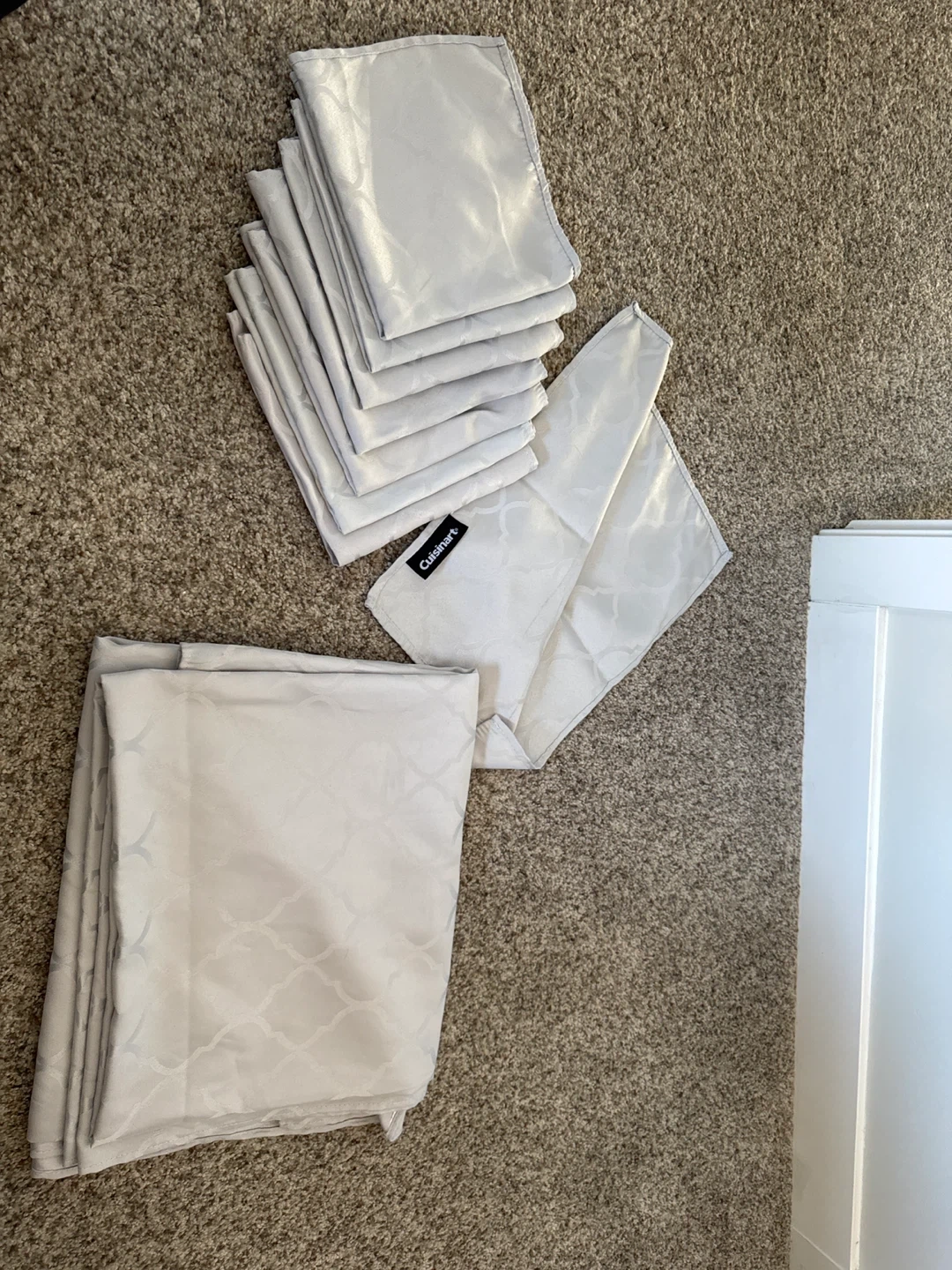15Selling a set of 8 Cuisinart napkins in a lovely silver colour! These are perfect for adding a touch of elegance to your dining table. Also has table cloth.