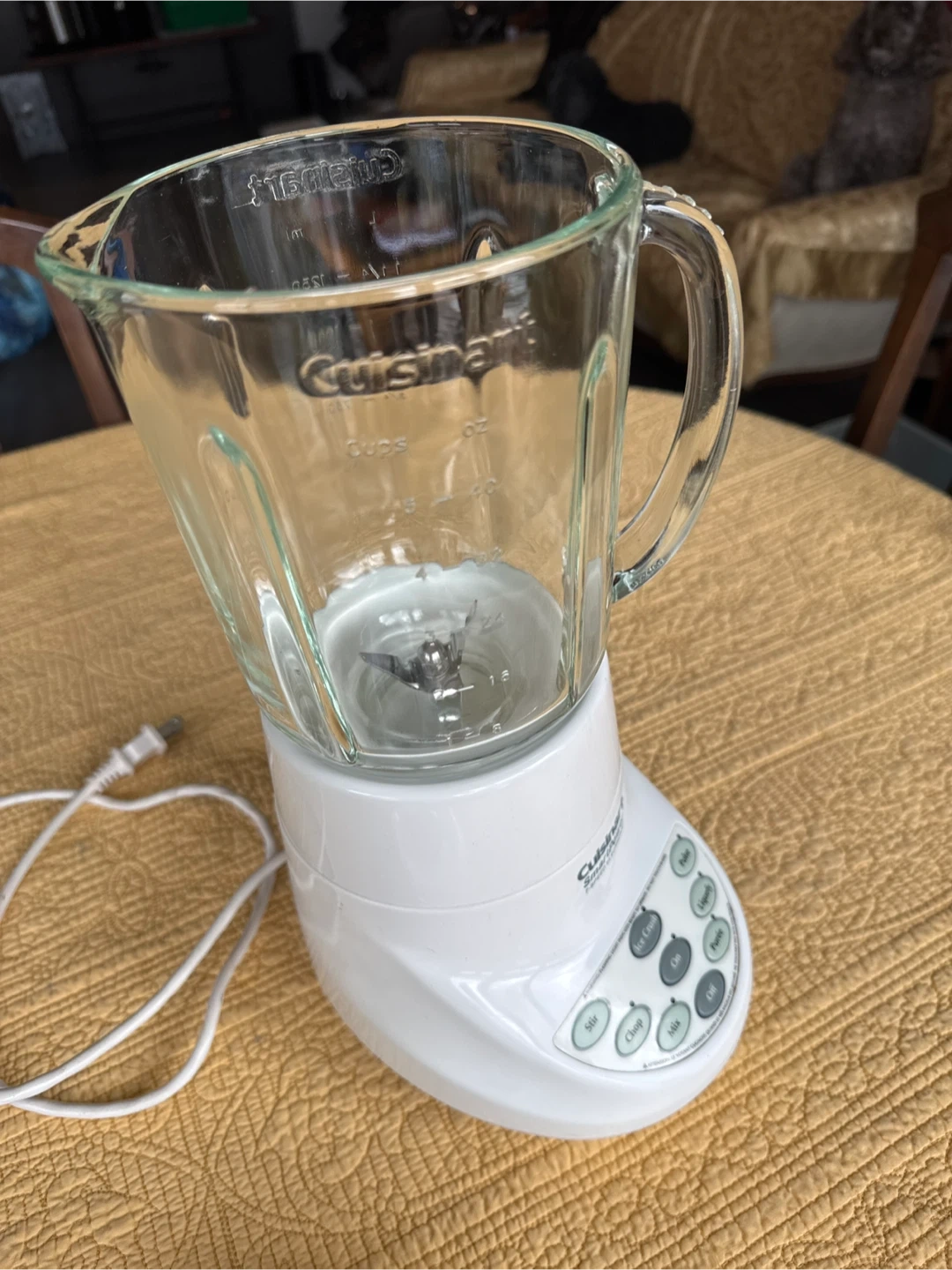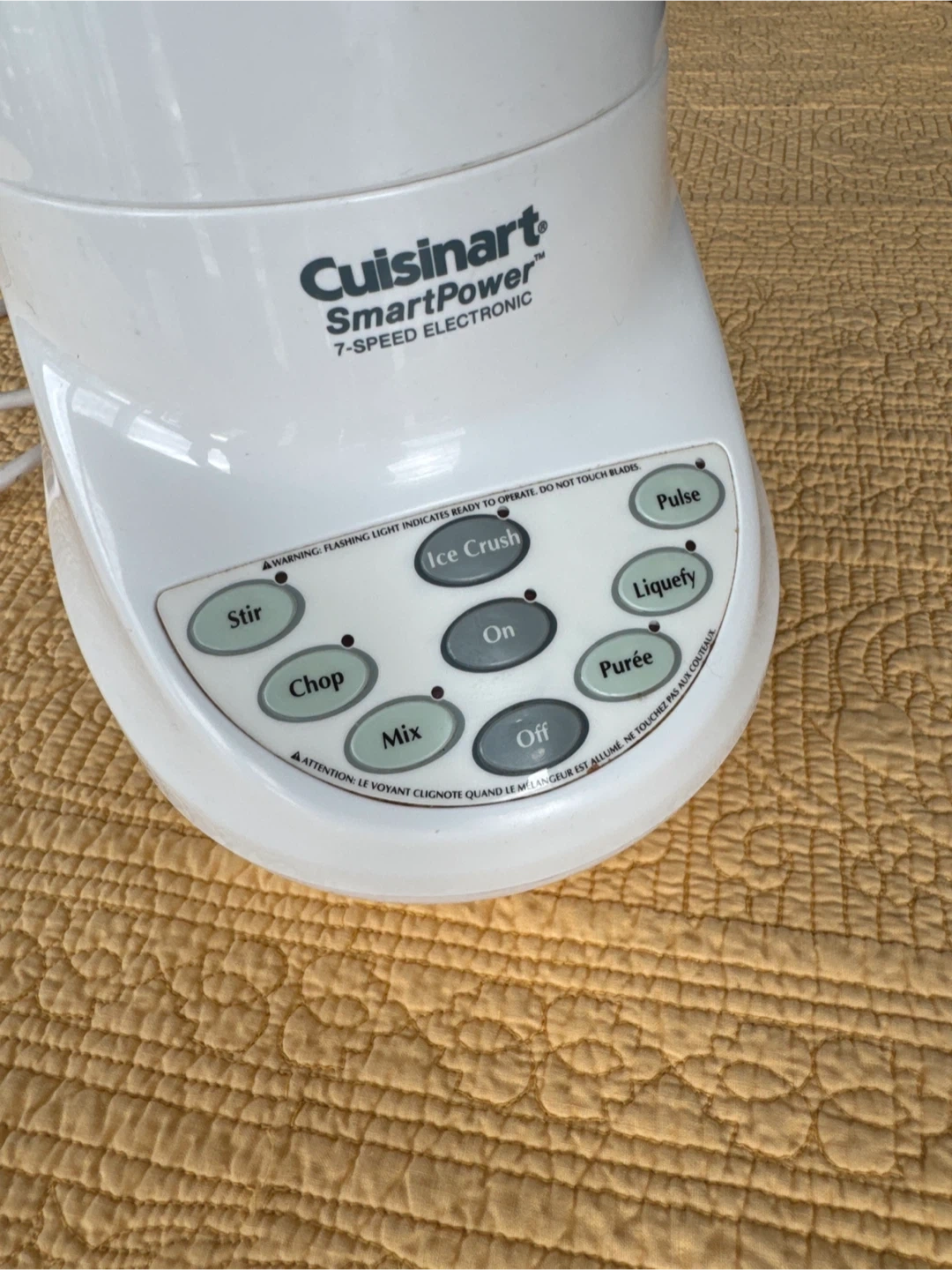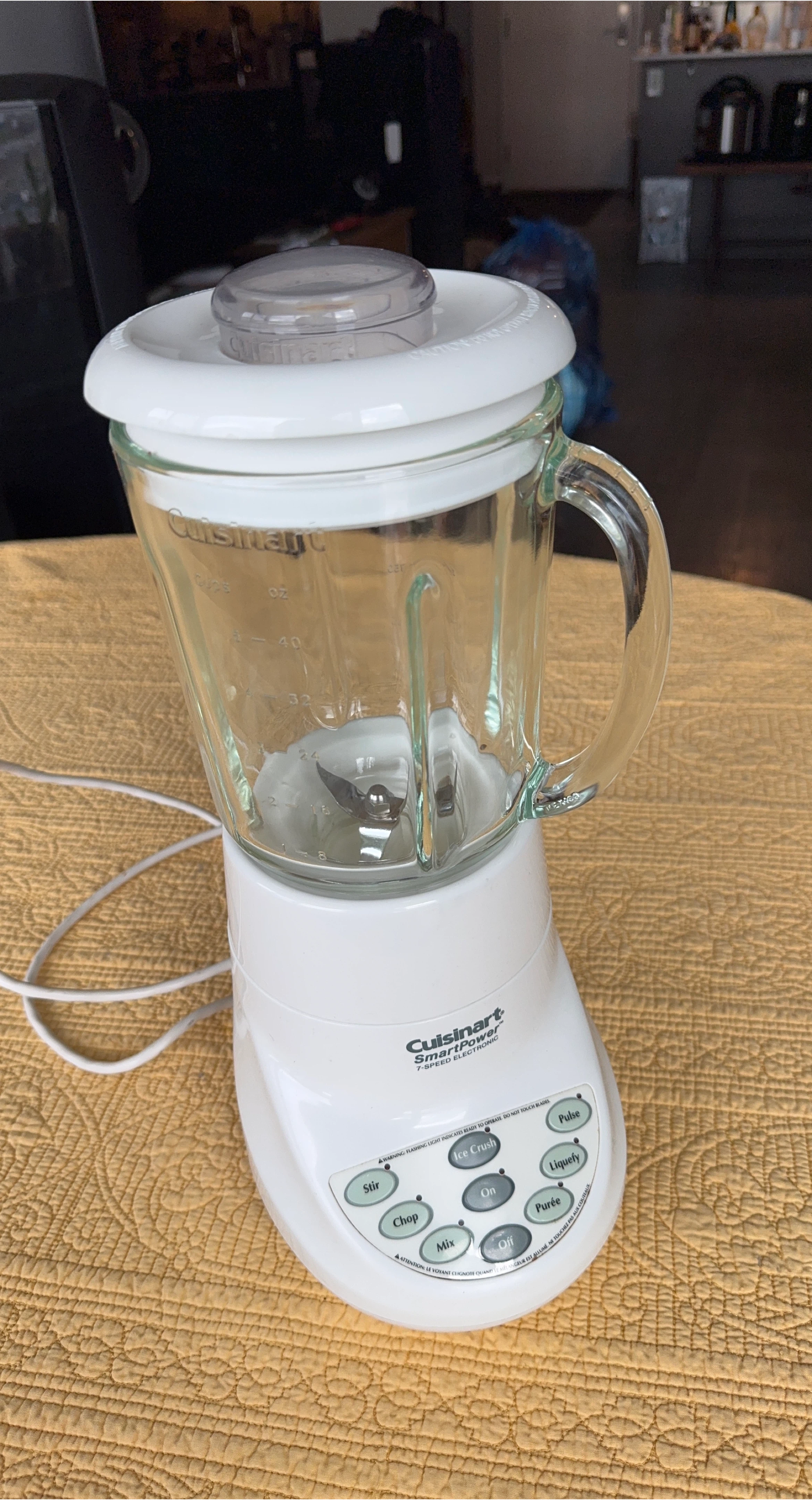 Selling a Cuisinart SmartPower 7-Speed Electronic. This blender features multiple speed settings for stirring, chopping, mixing, ice crushing, pureeing, liquefying, and pulsing. The blending portion is glass and not plastic.