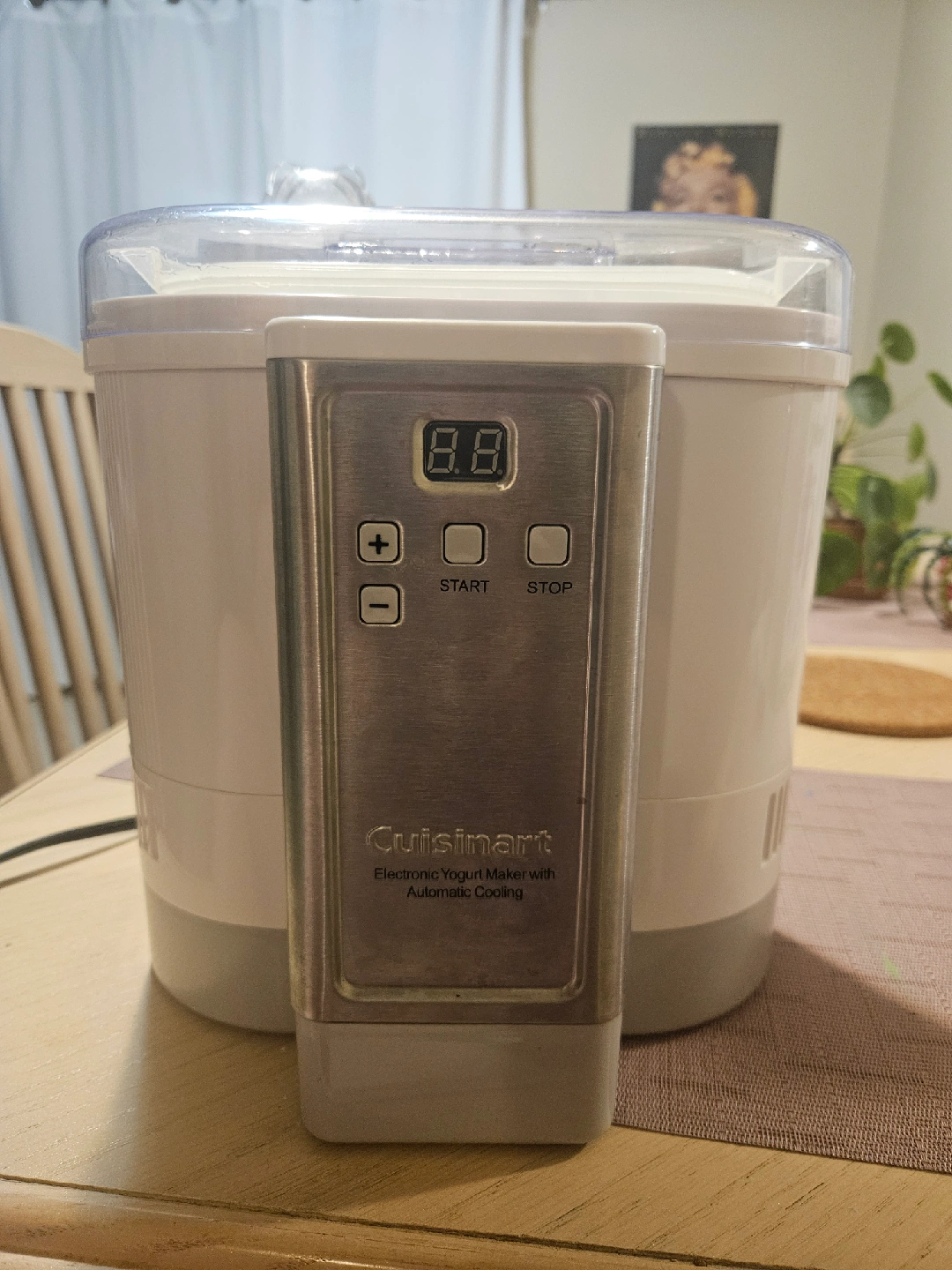 I'm selling a Cuisinart Electronic Yogurt Maker with Automatic Cooling, model CYM-100. This yogurt maker is perfect for making homemade yogurt right in your kitchen! It's in great condition and ready for its new home. Does not come with the scoop, but you could easily use a spoon.