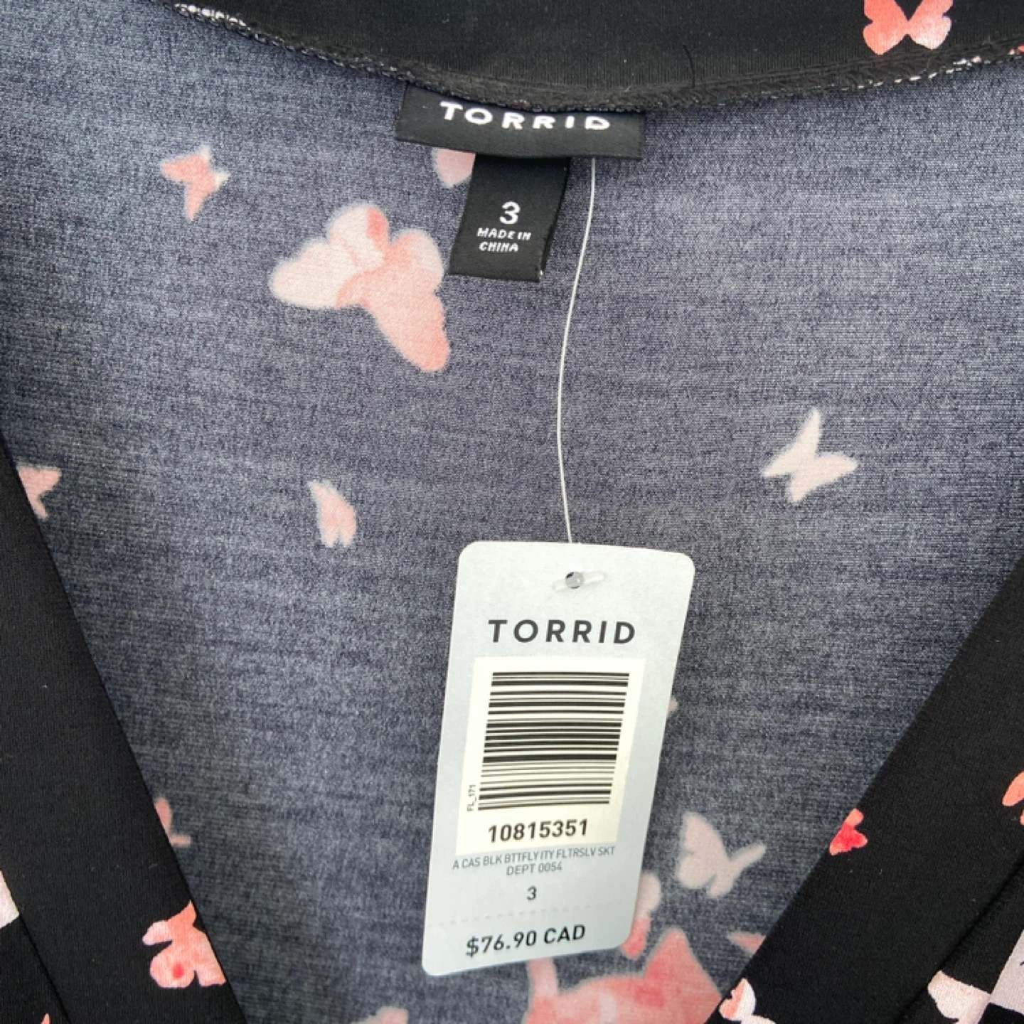 Torrid NWT Black Butterfly Print Flutter Sleeve Dress