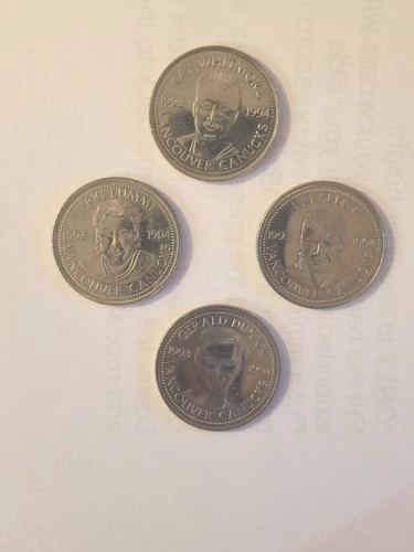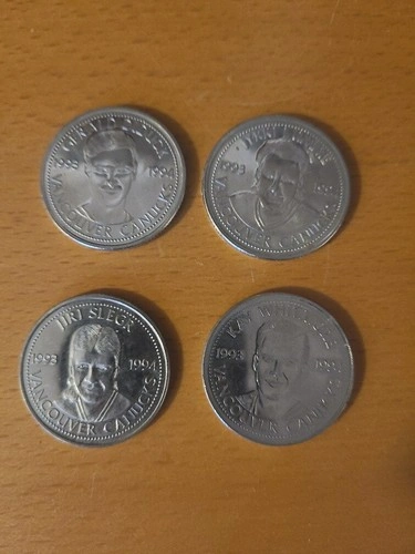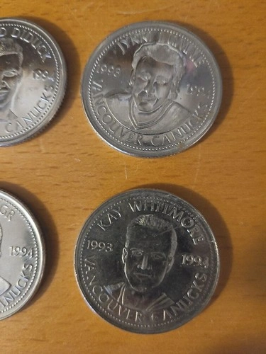 Vintage Canuck Foundation Vancouver Canucks Limited Edition Team Coin Collection from 1993-94. Includes coins for Jiri Slegr, Kay Whitmore (one small scratch), Jyrki Lumme, and Gerald Diduck. These 4 coins are sold together as a bundle. Let me know if you're interested!