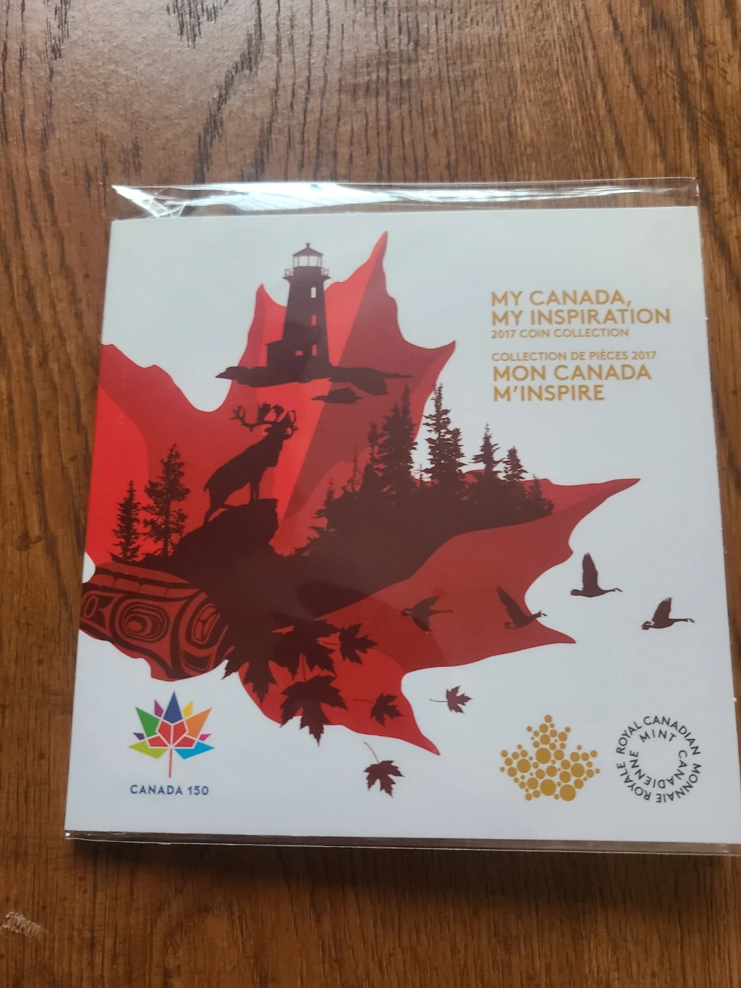 Collection of Canadian coins from 2017 celebrating Canada 150, My Canada, My Inspiration. Includes all Canadian coins denominations with unique designs. Brand new with Royal Canadian Mint packaging.