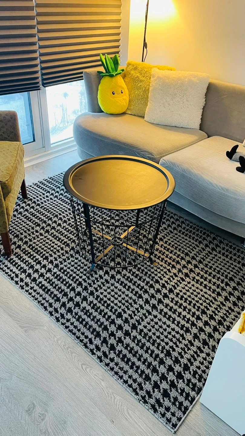 IKEA Gualov Black Tray Table with Rug
