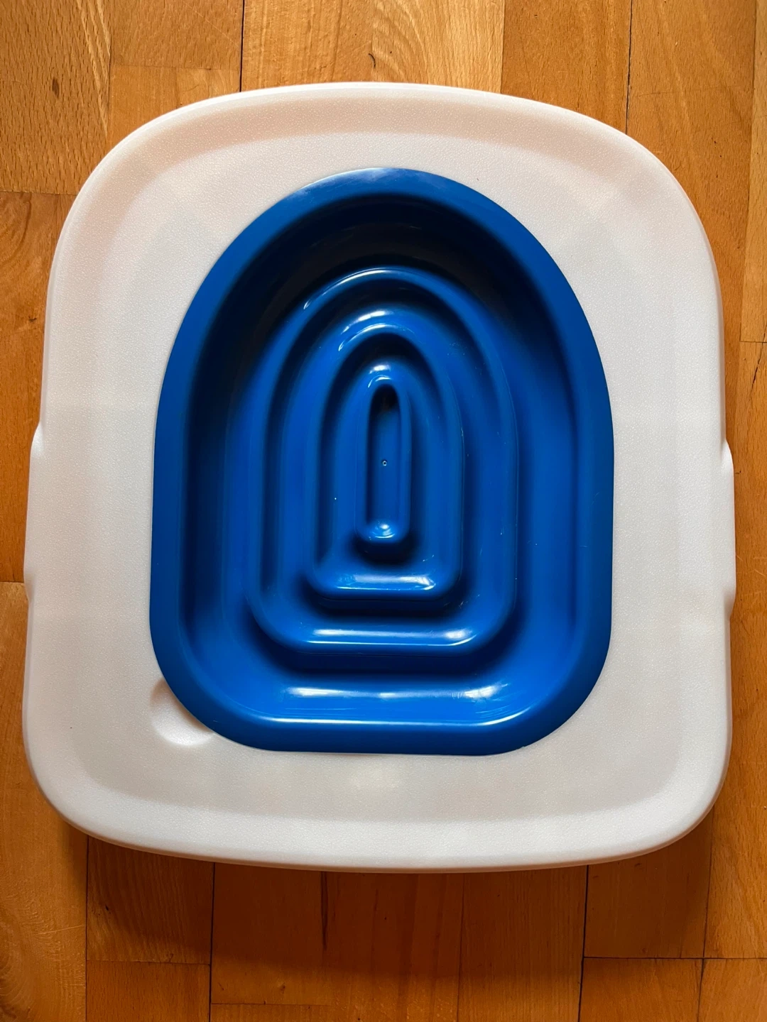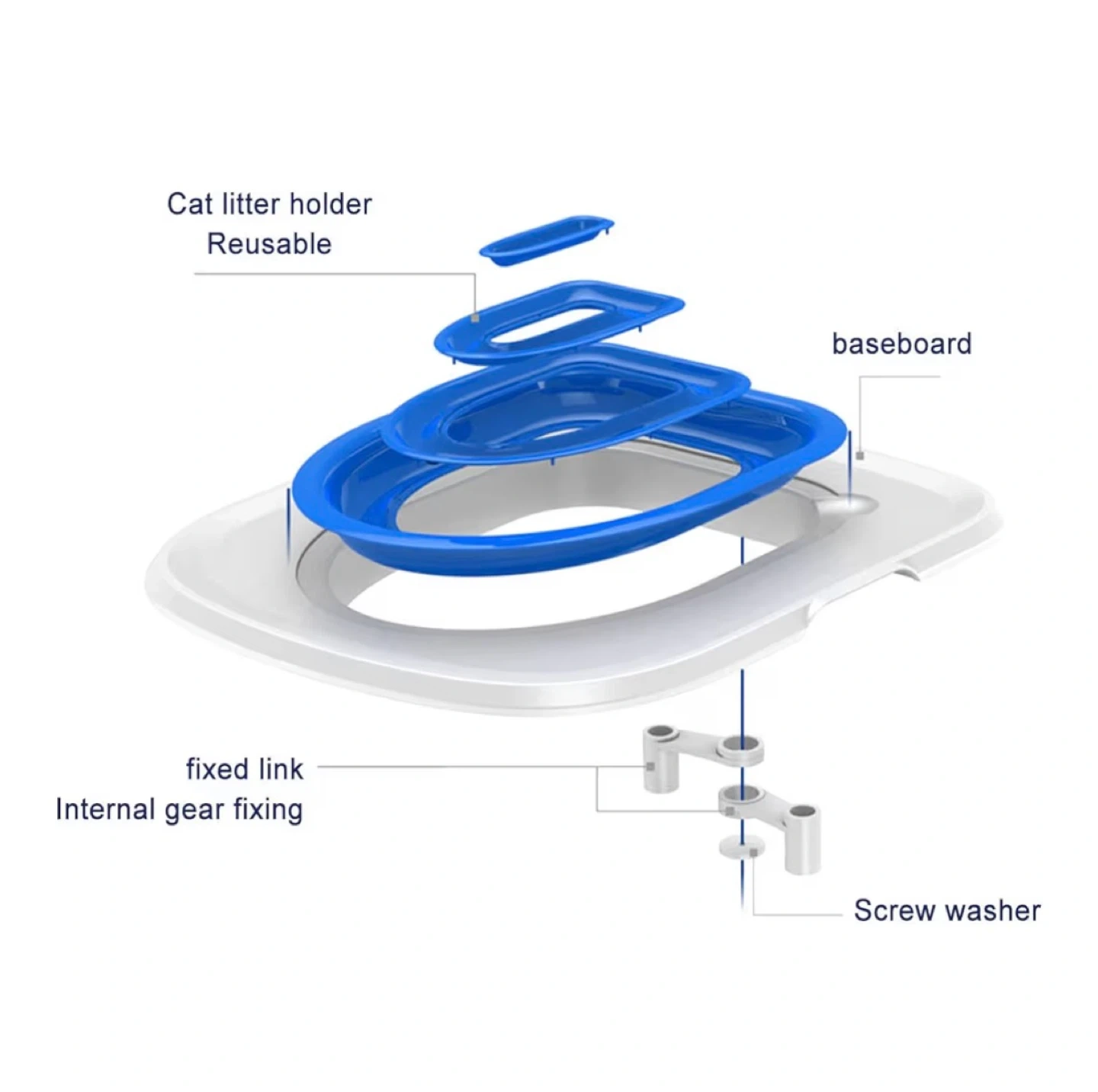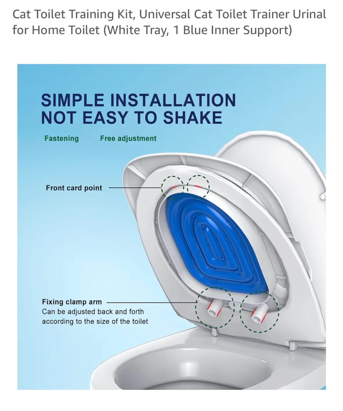 This cat toilet trainer is designed to help your cat adjust to using the toilet. It features a multi-stage training system with removable rings. It's made of durable plastic.