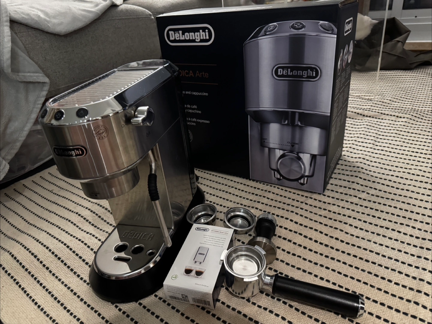 Selling a DeLonghi Dedica Arte espresso machine in excellent condition! It comes with all the original accessories and the box. Get ready to enjoy cafe-quality espresso at home!