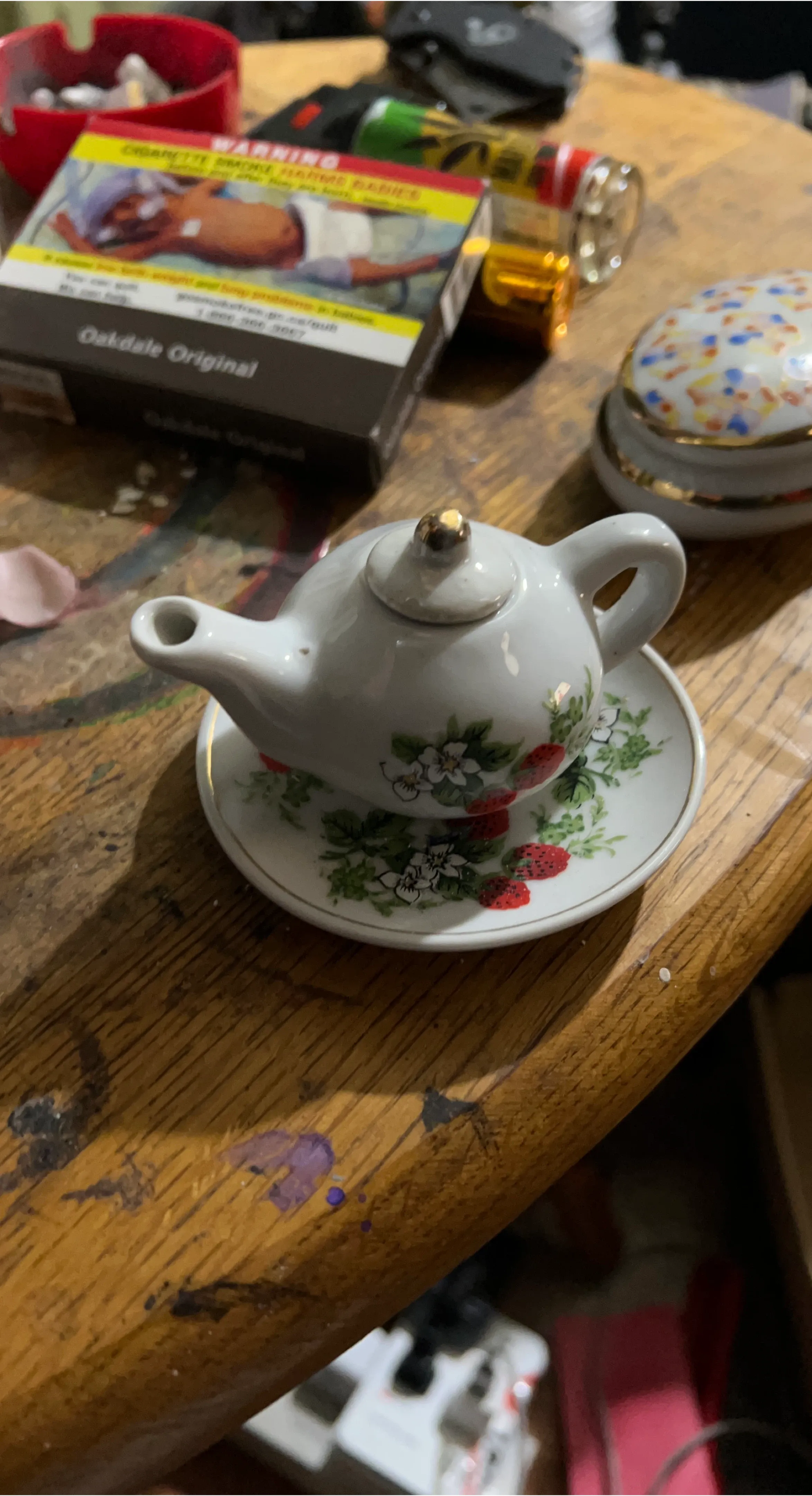 Miniature Teapot and Saucer with Strawberry Design