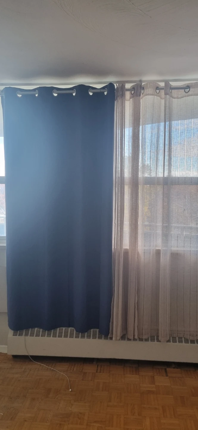 10Selling a set of curtains! There are two navy blue panels and two sheer beige panels. They're in great condition and ready to add some style to your place. Curtain rod is included.