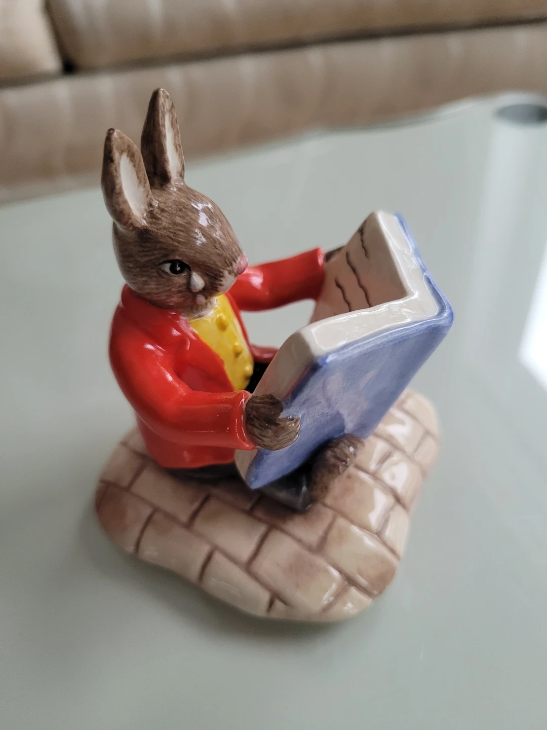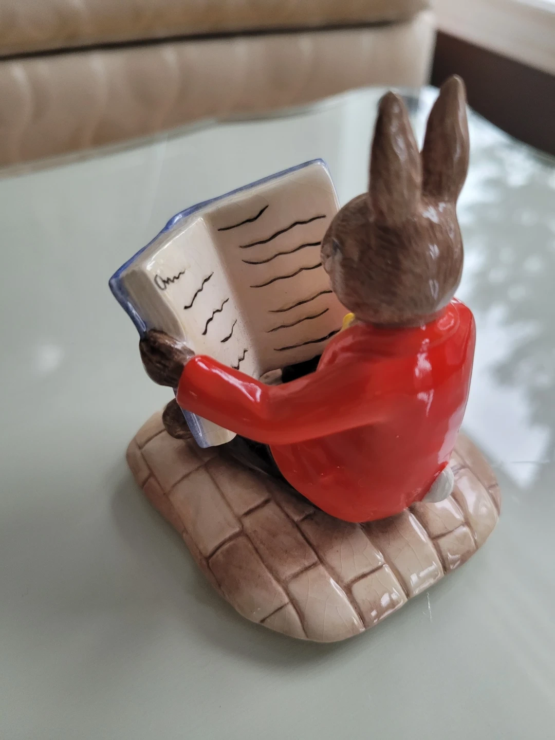 Royal Doulton charming ceramic figurine of "William Reads Without Tears". The detail on this cute piece is perfect for collectors or fans of Beatrix Potter stories.This little bunny figurine is approx 8.5cm high.