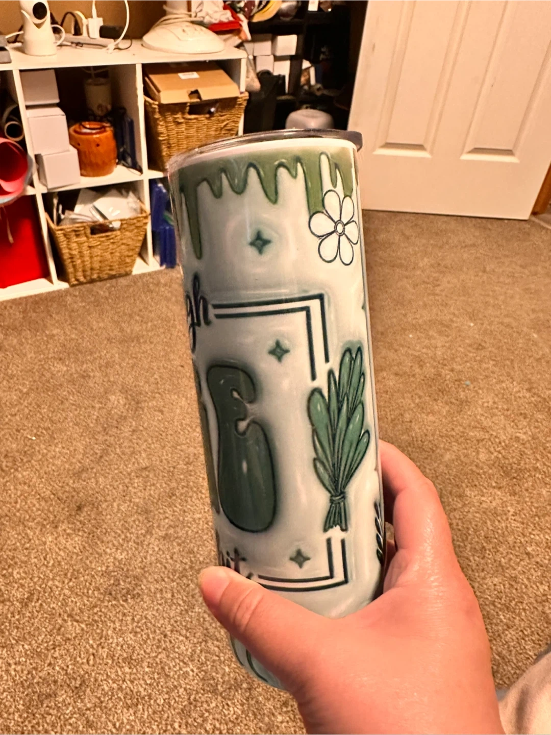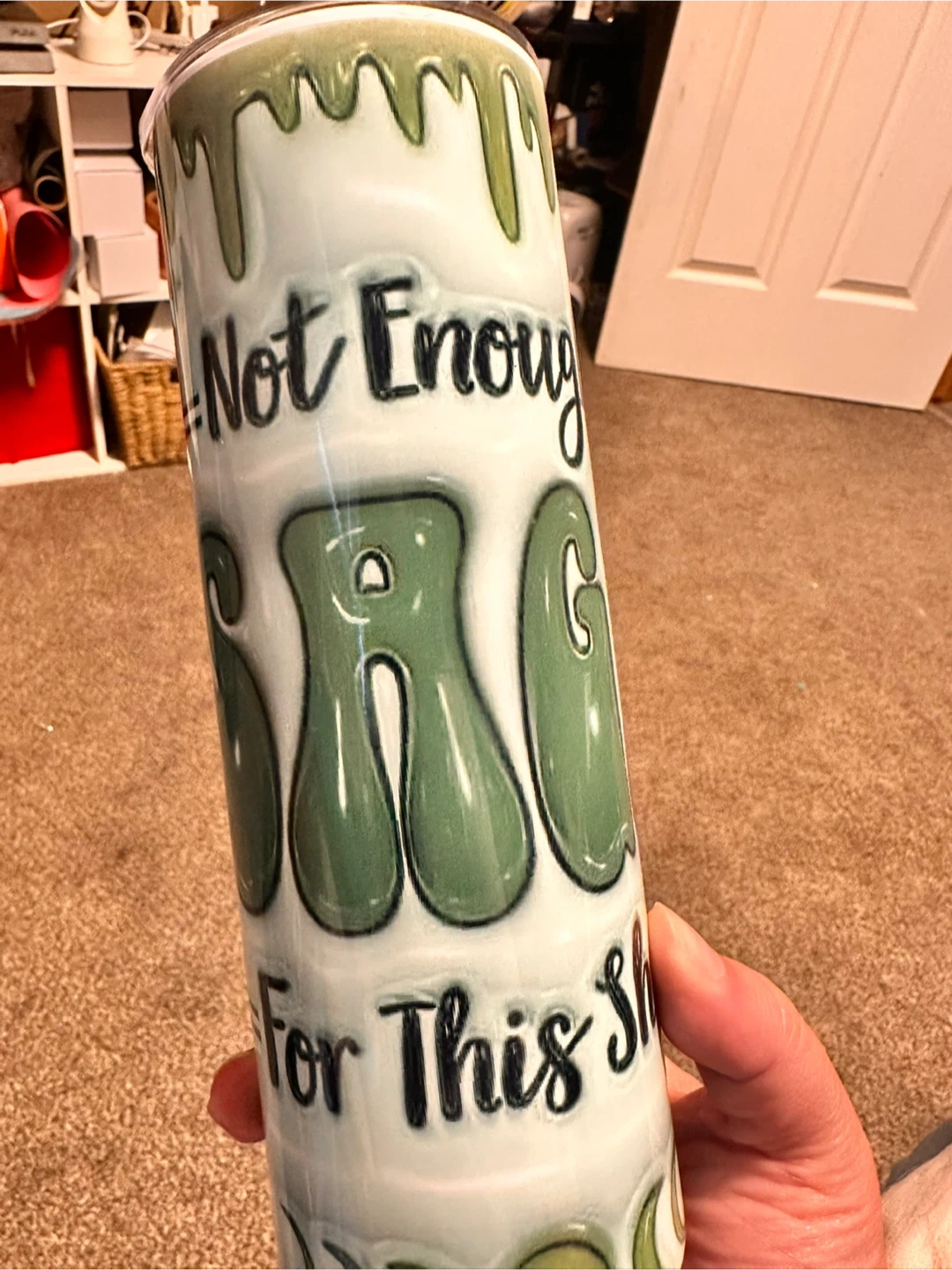 This is a custom tumbler with the phrase "Not Enough Sage For This Shit" printed on it. It also features a sage design and a flower. Perfect for anyone who loves sage or needs a little extra protection!