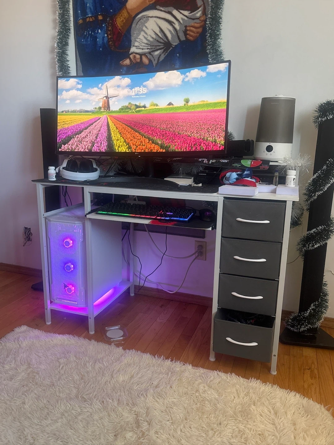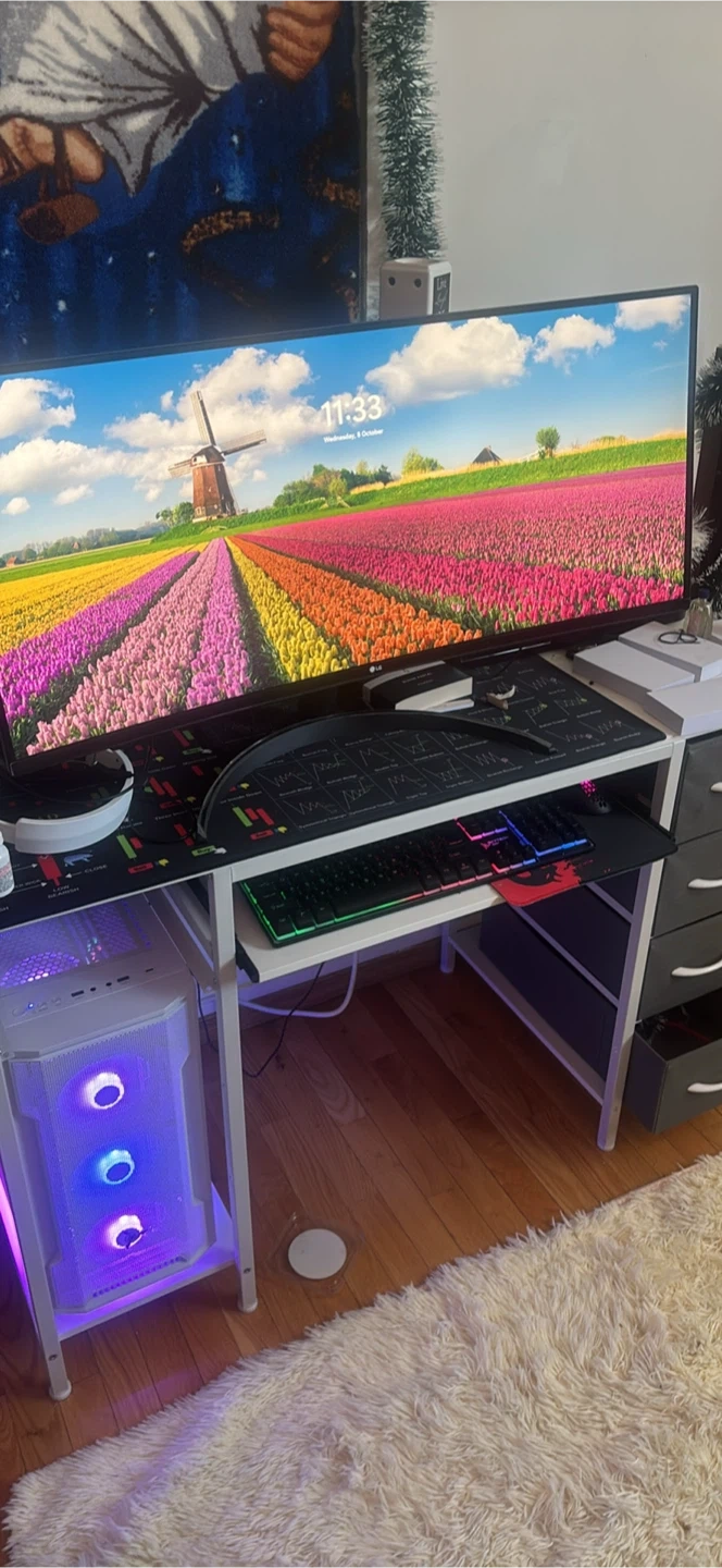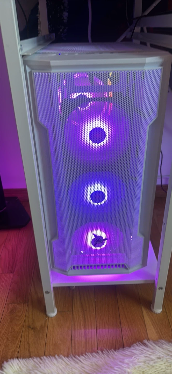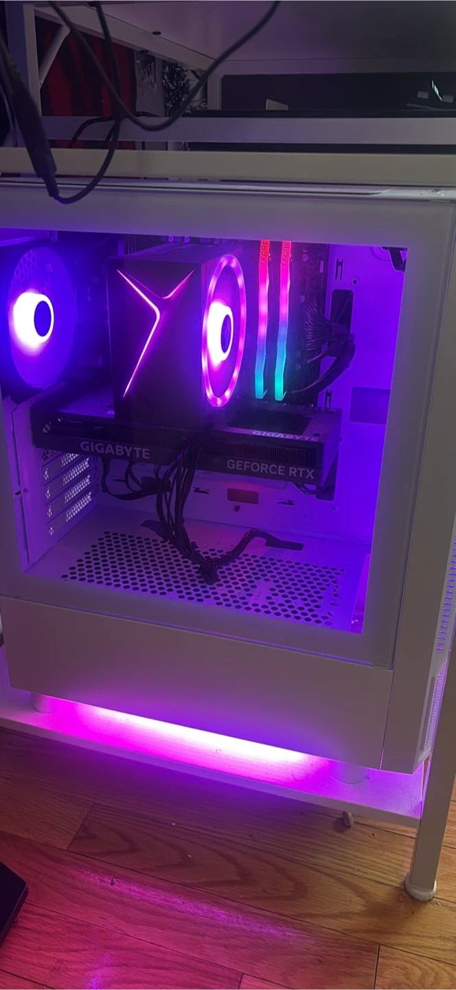 Selling a custom-built white gaming PC. It features a Gigabyte GeForce RTX graphics card and vibrant RGB lighting to make your gaming setup pop! Everything including curve 32 inch tv and stand