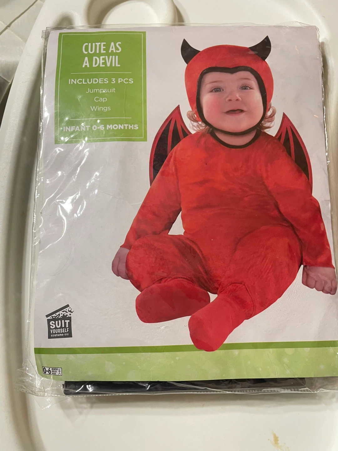10Selling a super cute 'Cute As A Devil' infant costume! It includes three pieces: a jumpsuit, a cap, and wings. Perfect for Halloween or dress-up! Recommended for infants aged 0-6 months