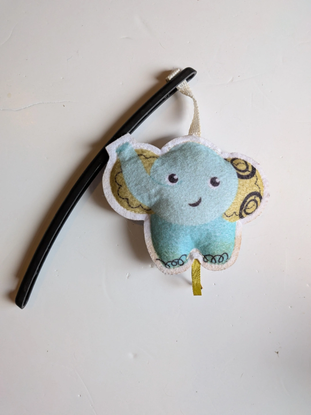 1000+Selling a sweet little elephant mobile! It's in great shape and would look adorable in a nursery or baby's room. The elephant is made of soft felt and has a gentle, calming look