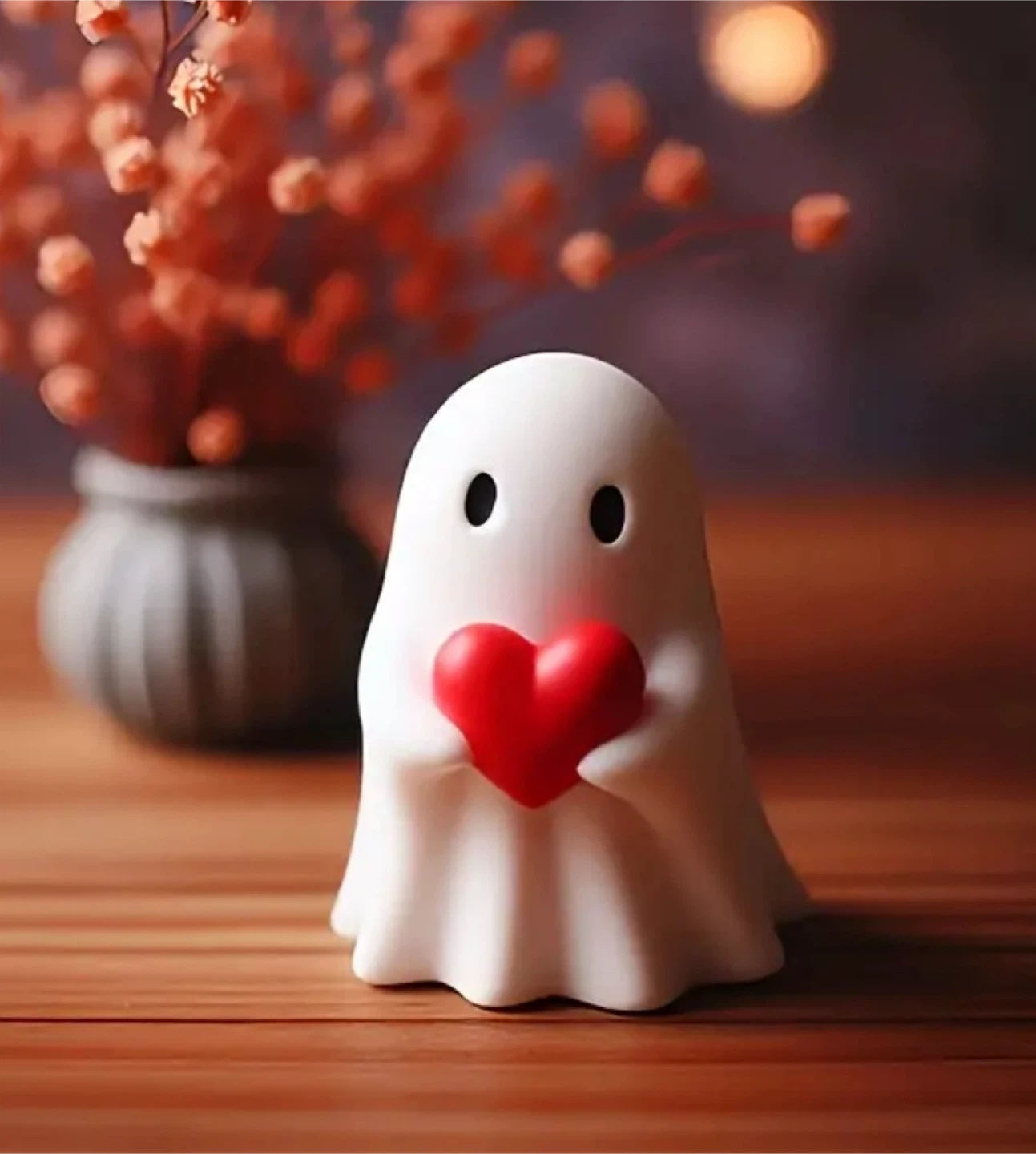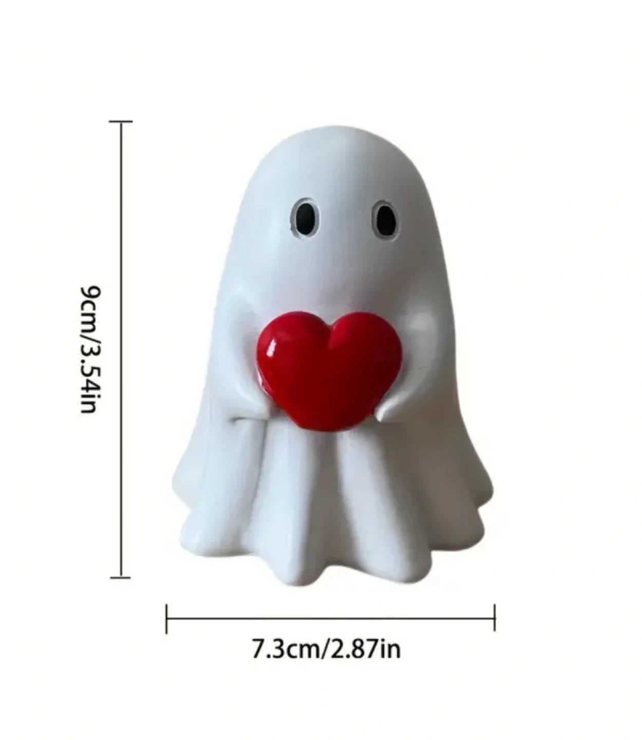 Add a touch of whimsy to your space with this adorable ghost figure holding a heart or cat! It's about 3.5 inches tall, making it a cute and compact addition to any room. Perfect for adding a bit of charm to your desk, shelf, or nightstand. For both 20 cad.