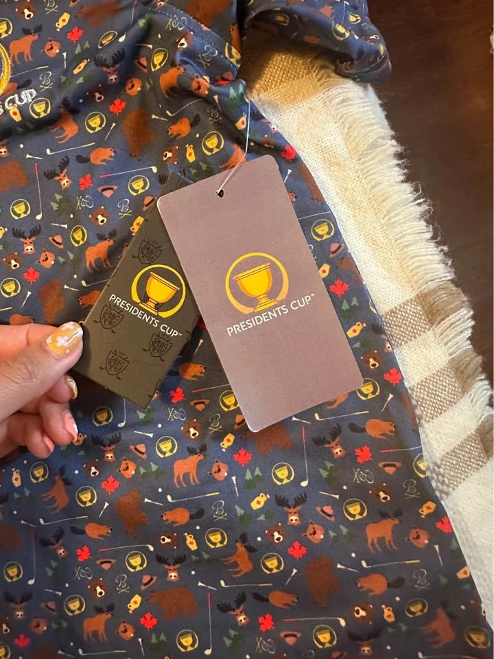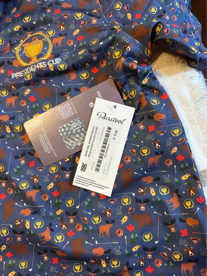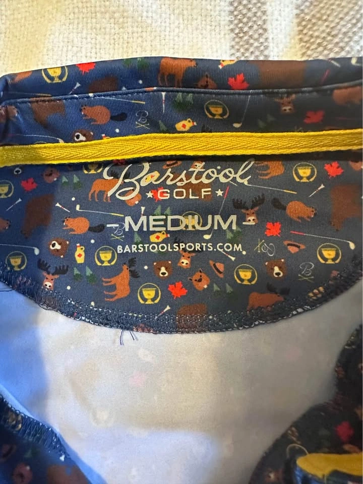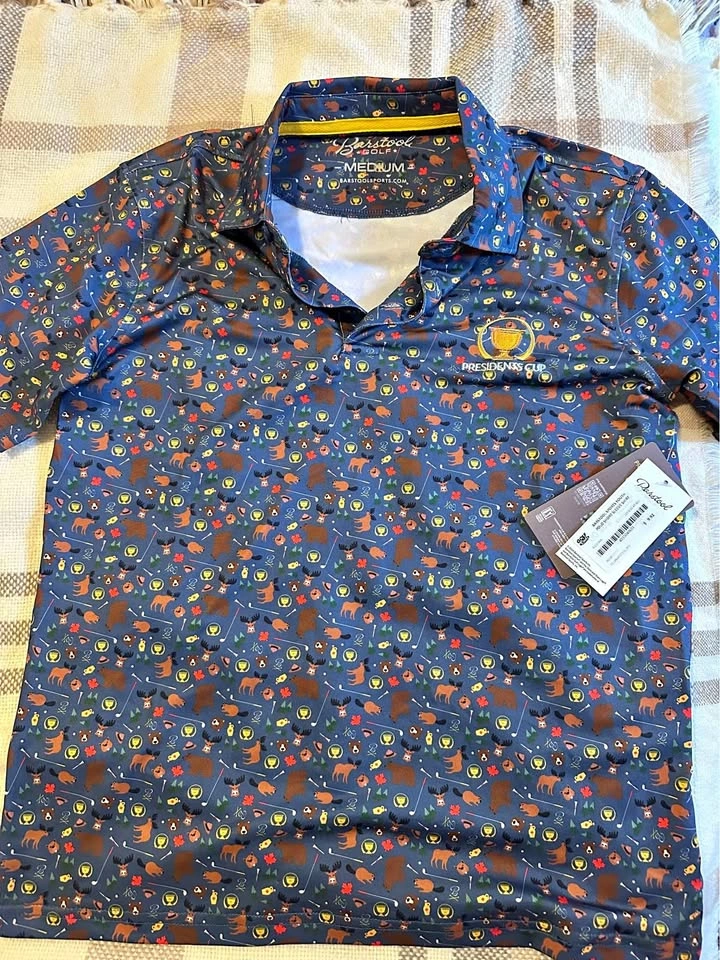 Golf shirt for women. It’s new. Very cute illustration about Canada on it!! 🇨🇦🐻🫎⛳️ I’m living in Don Mills area. We can meet around here or I’ll bring it Eglinton station.