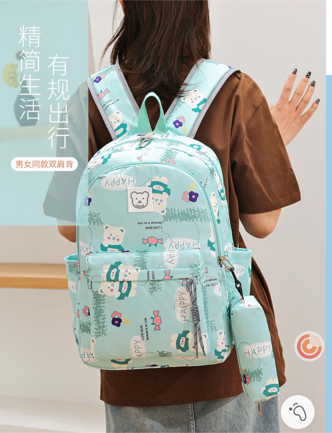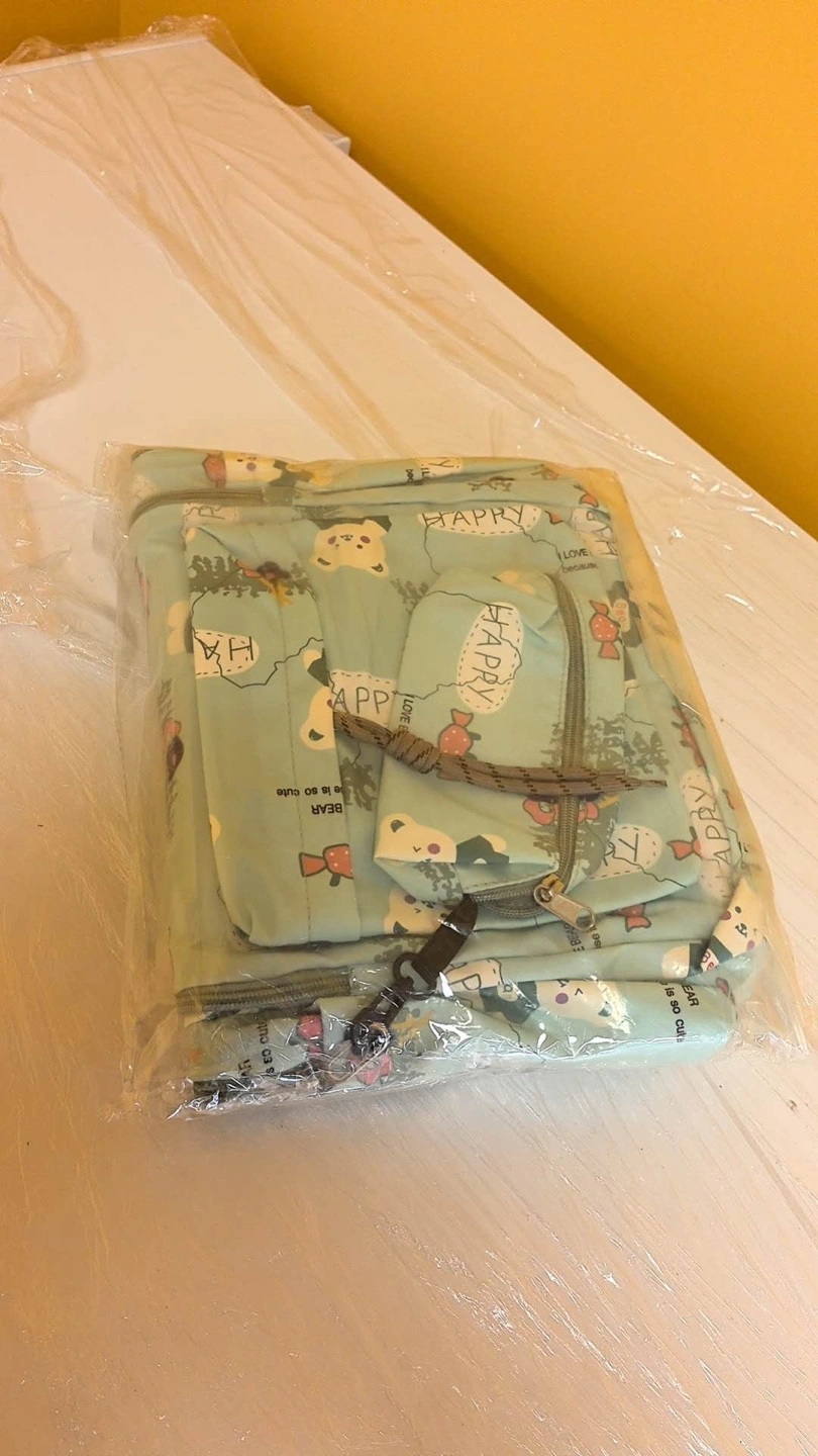 135‼️‼️ Pick up only near Shopsatdonmills or Scarborough Town Center‼️‼️ Adorable backpack featuring a pastel green colour and a repeating pattern of cute bears, candy, and flowers. Includes a coordinating pencil case. Perfect for school, travel or everyday use. Features adjustable straps and multiple compartments.