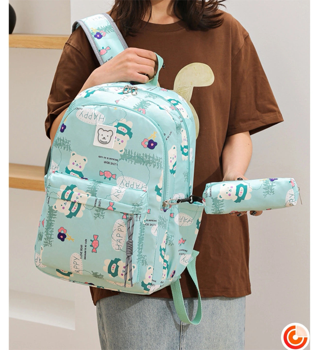 Cute Pastel Green Bear Backpack with Matching Pencil Case