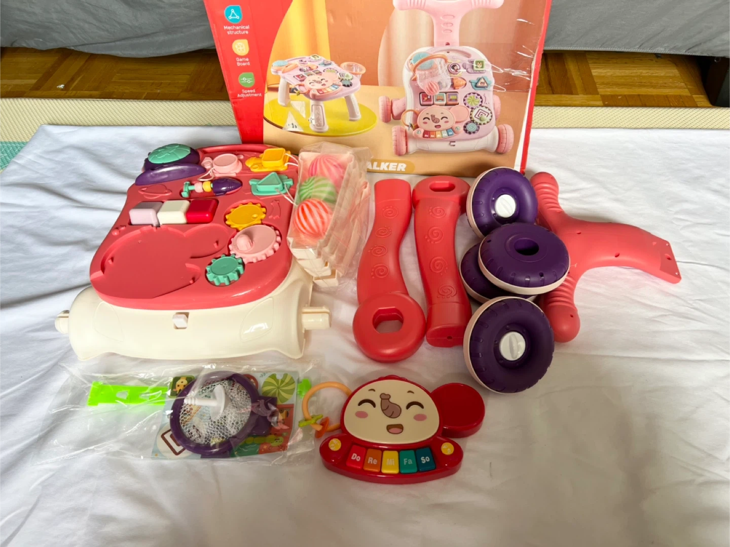 Selling a 2 in 1 Baby Walker! It can be used as a walker or converted into a play table. Comes with all the parts shown in the picture. Great for helping your little one learn to walk and explore!
