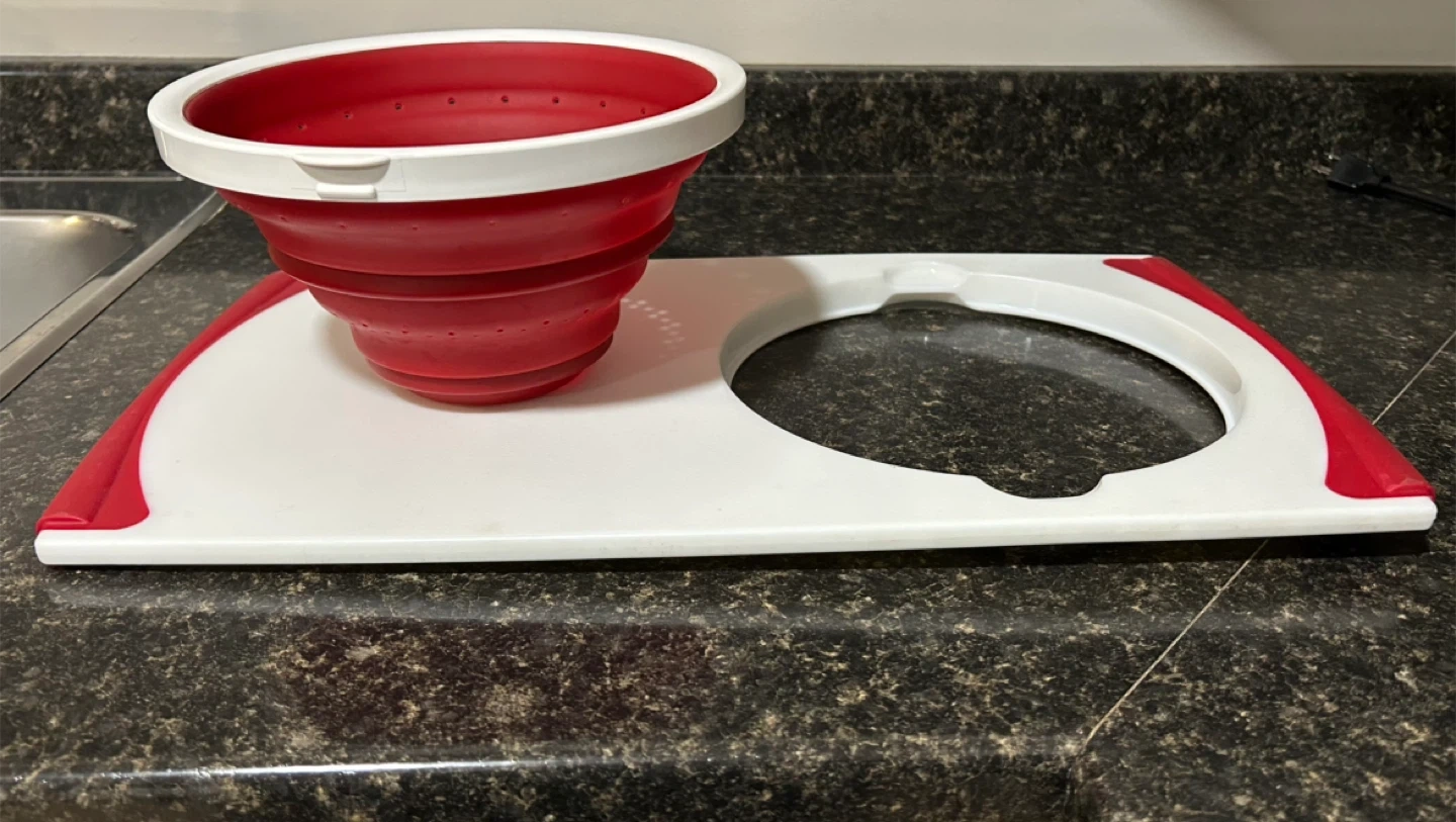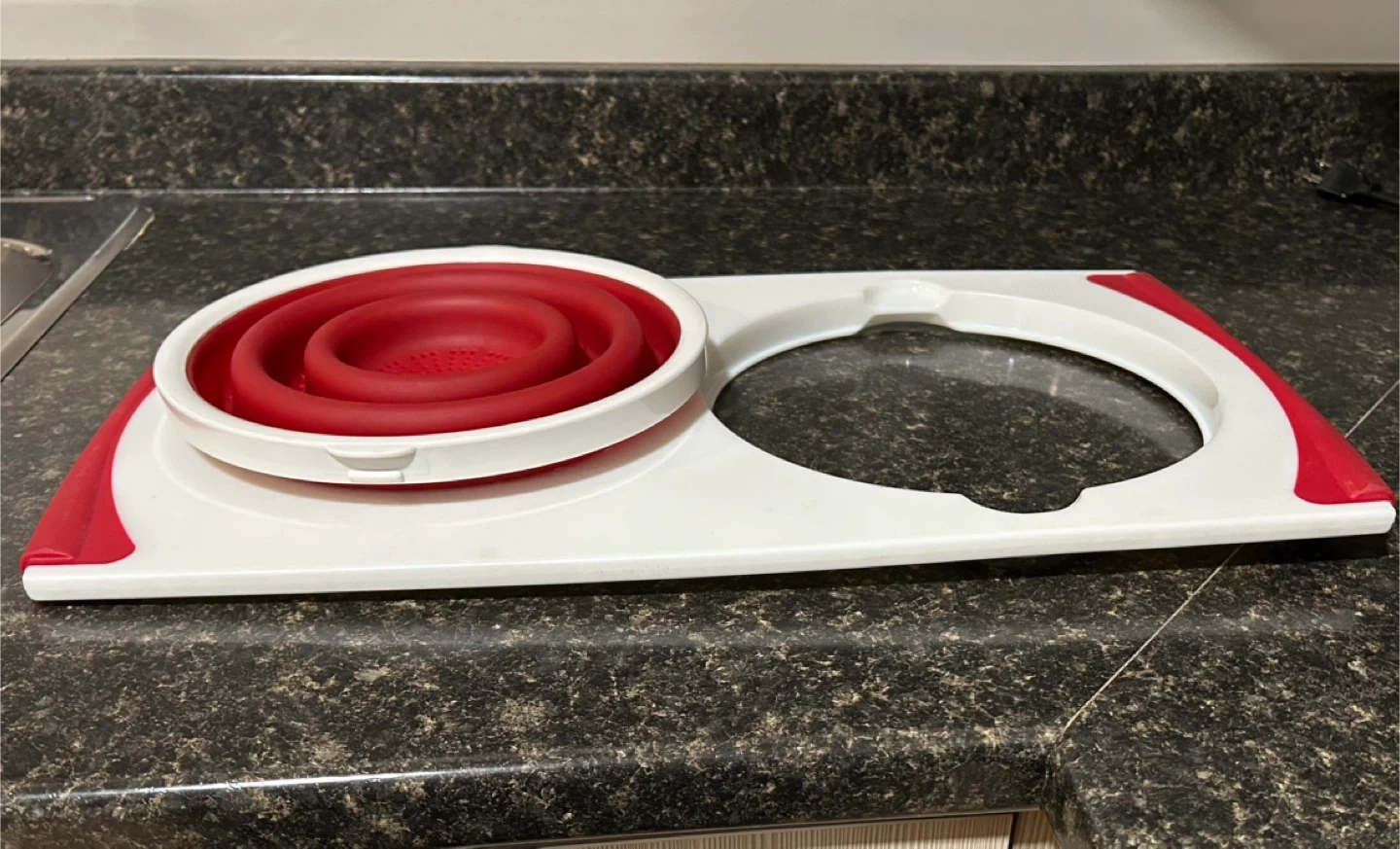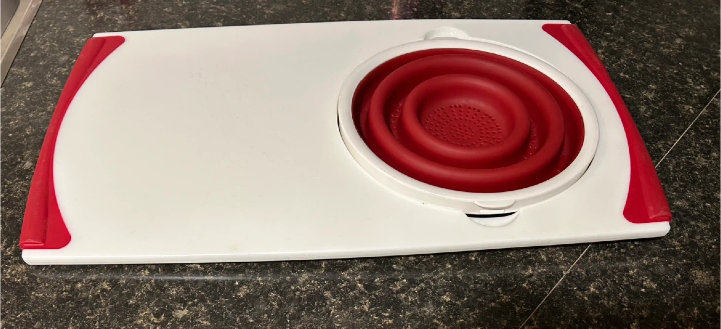 155Cutting Board with a collapsible colander. Excellent Condition. Perfect for over the sink. Easy to store Pick up only