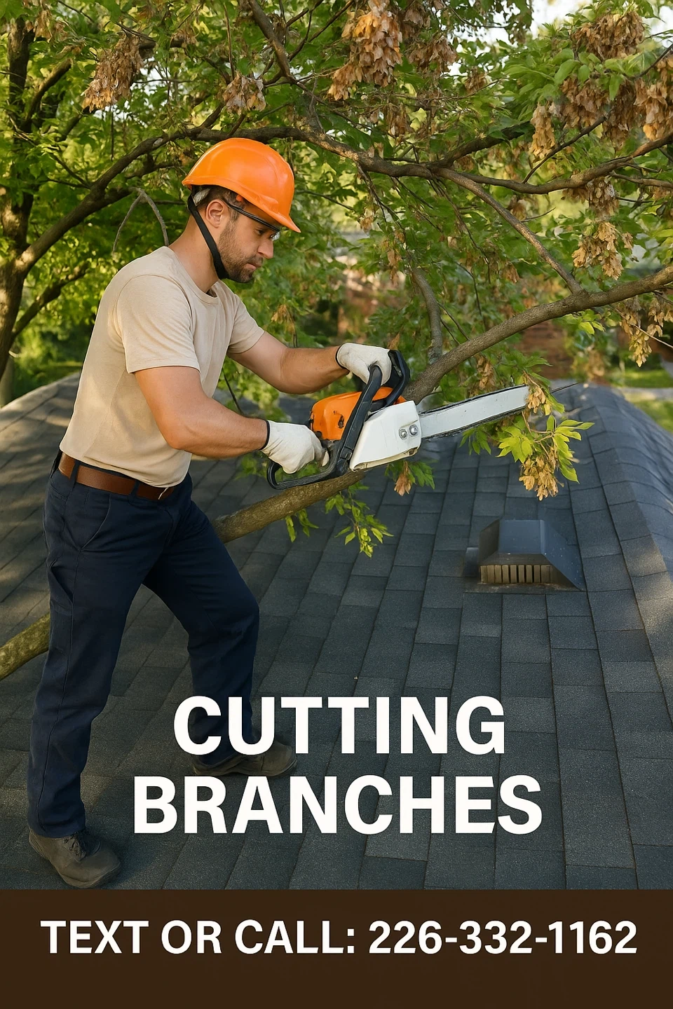 101—- cutting branches over the roof —- Ready to remove all tree branches from ur roof Text or call :2263322162