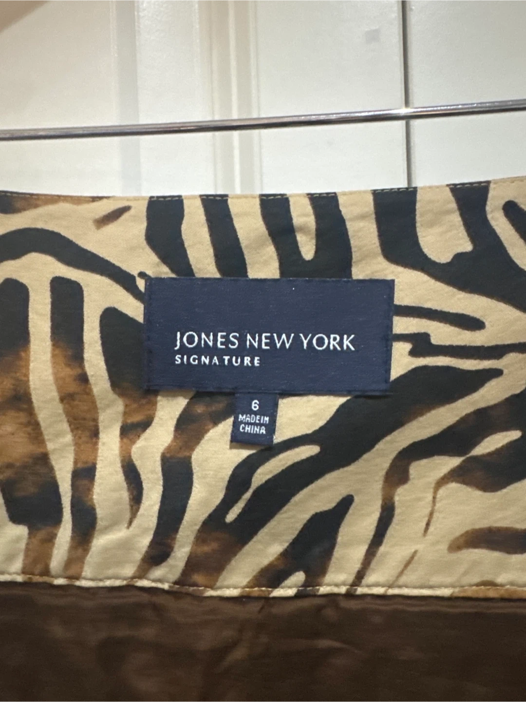 Jones New York Signature skirt in a size 6! It has a brown and black zebra print and is in great condition.