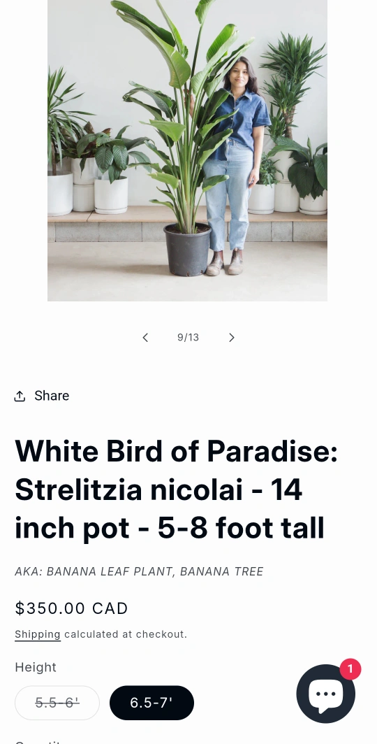 Buy & SellGiant XL White Bird of Paradise plant πGiant XL White Bird of Paradise plant π$25014 inch pot 8 feet tall Retail $350 + tax. PICK UP IN BRAMPTON WHERE TO MEETMcLaughlin Road South & Ray Lawson BoulevardView MapSELLERLillMclaughlin Village1000+131 reviews0 chatsΒ·2 favoritesΒ·36 viewsSEND CHAT TO SELLERHi Lill! Iβm interested in your listing.Hi Lill! Iβm interested in your listing.Get the Karrot app to chatSign In to chat