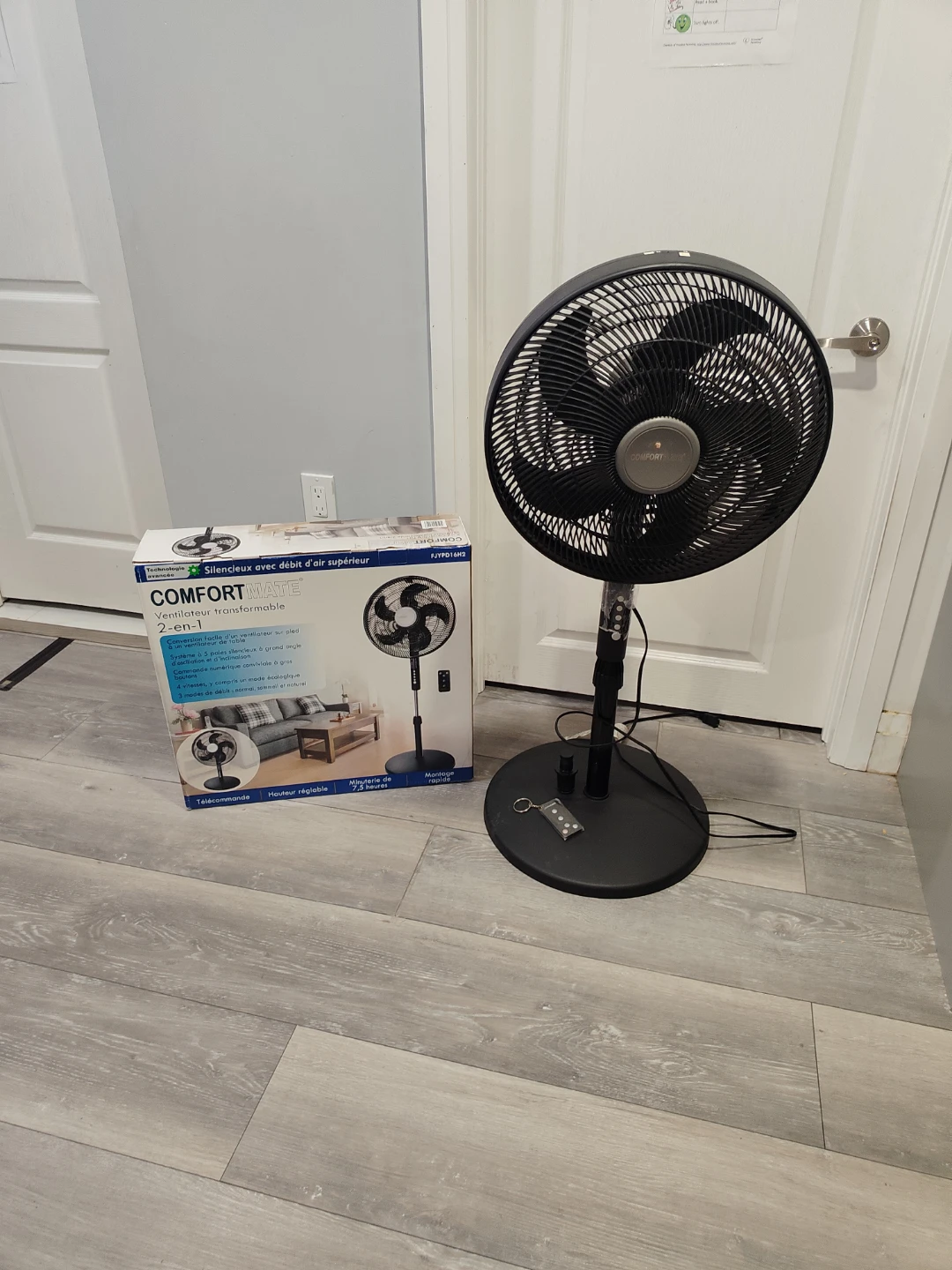 I have a like new Comfort Mate 2-in-1 convertible fan for sale! It can be easily configured for floor or table use. It also features a wide-angle tilt for better air circulation. Has remote as well.