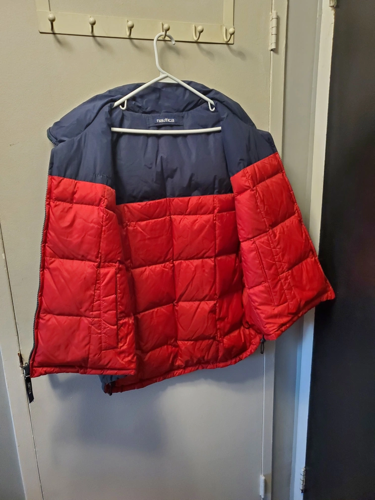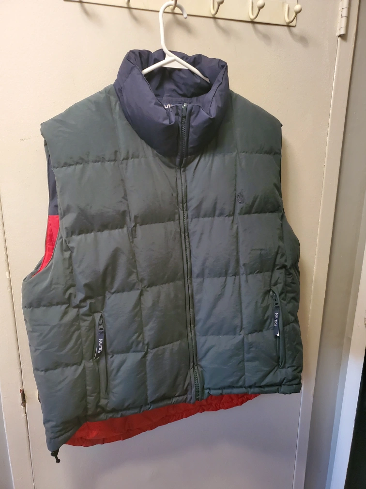 Nautica Men's XL Puffer Vest, Red and Dark Green Duble Sided