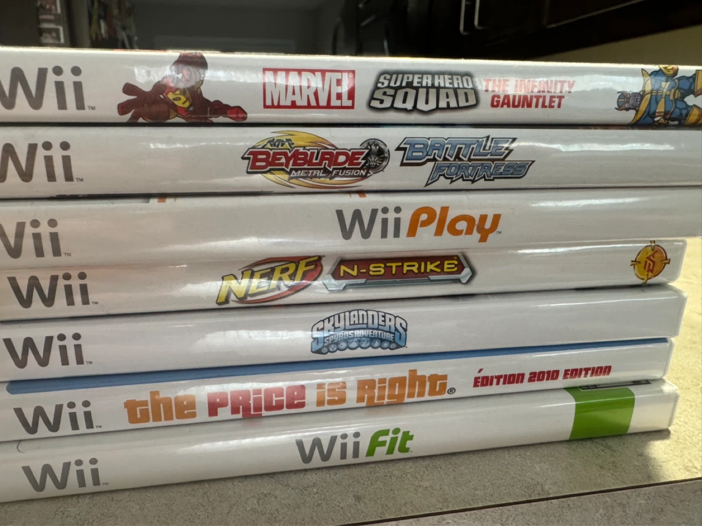 Complete Nintendo Wii console package with several popular games. Includes the Wii console, Wii Fit board, 1 controller, and all necessary cables and power adapter. It's ready for hours of family fun!