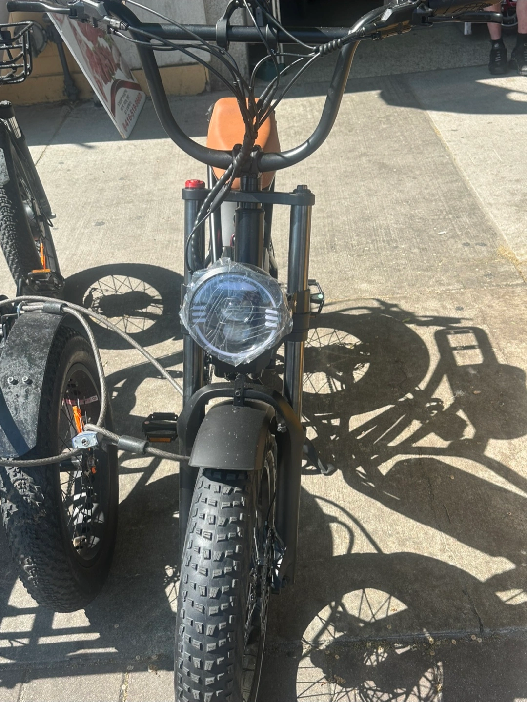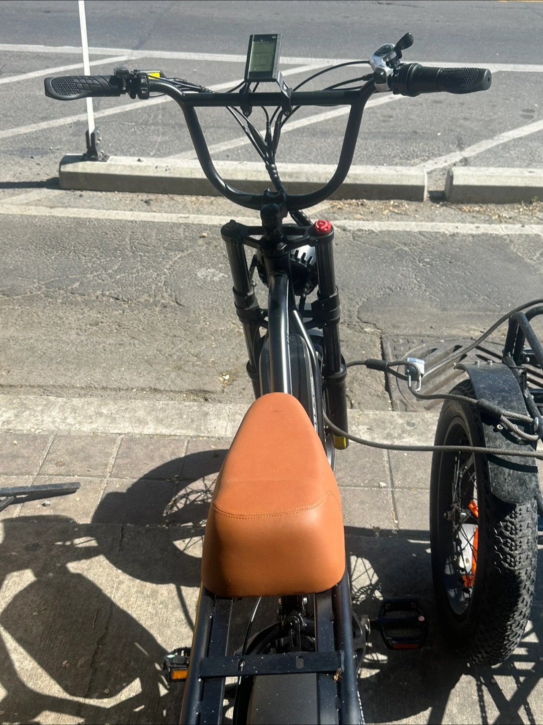 Up for sale is an electric bike. Features a brown seat. Black frame and handlebars. Perfect for enjoying the scenery on a relaxing ride. Great for uber Brandnew