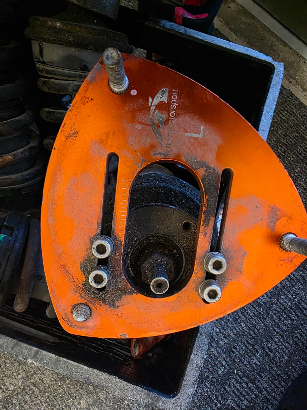 Neo Motorsport coilovers with adjustable camber plates. These are performance suspension parts designed for track or aggressive street use.