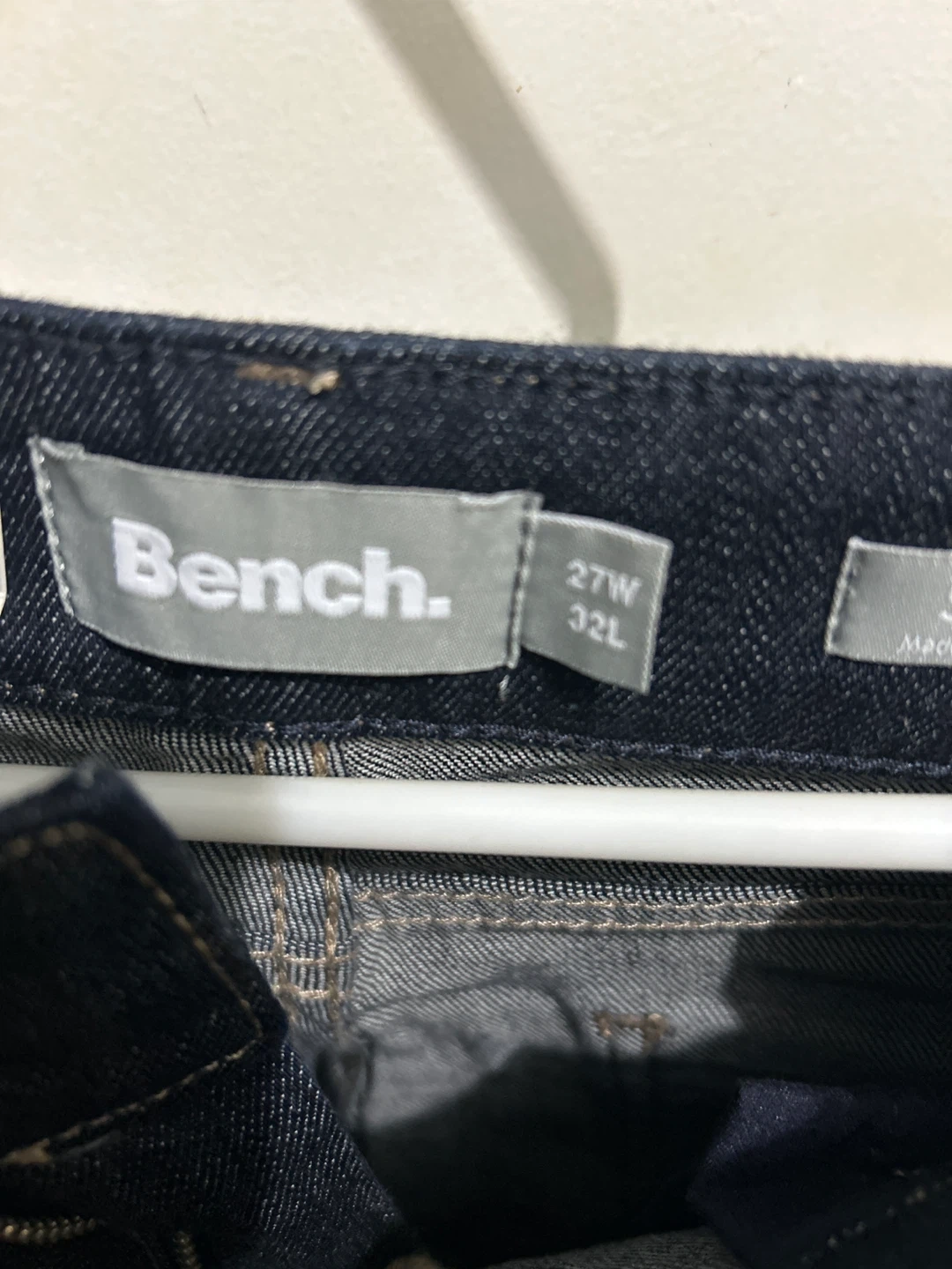 These are a pair of Bench denim jeans in size 27W 32L! The style number is BLWM001883, and the colour is denim slim dark blue. They were originally bought for $129.00