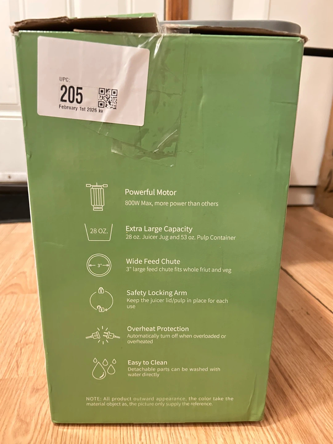 This is a GDOR centrifugal juicer with model J211. It features a 3-inch large feed chute and an 800W motor. The juicer has a silver finish and includes overheat protection. It's designed for efficient juicing.
