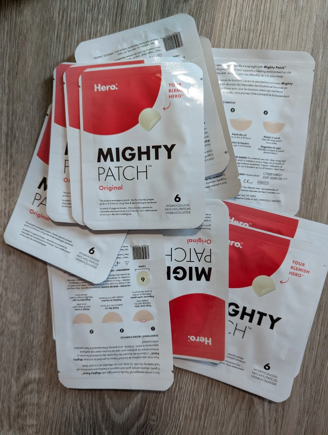This is a pack of Hero Mighty Patch Original hydrocolloid pimple patches. Each patch gently absorbs pimple gunk in 6-8 hours. They are drug-free and dermatologist-reviewed. These patches are useful for addressing sudden breakouts.