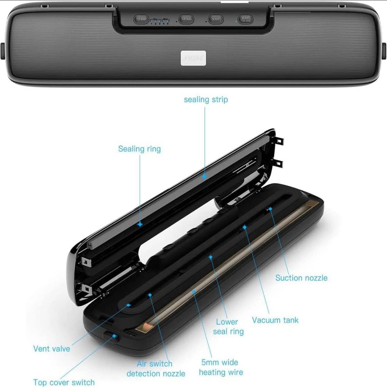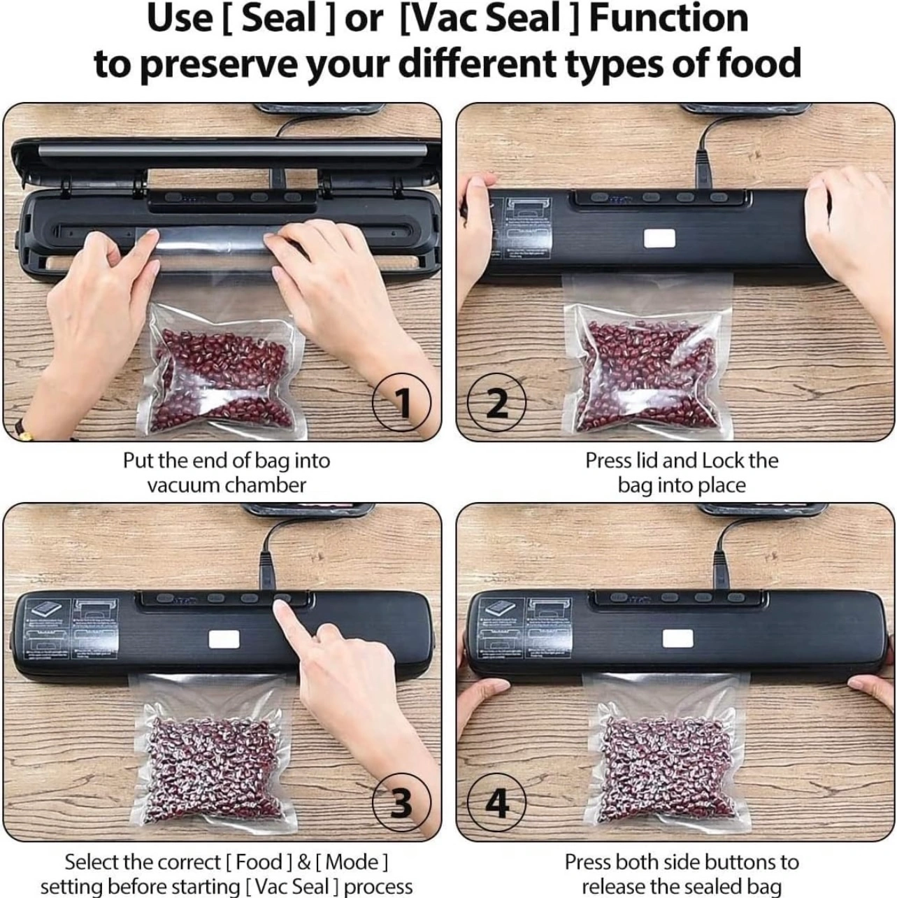 Brand new Fully automatic food sealing machine, vacuum sealing machine, single touch food preservation device with dry and wet food mode and LED indicator light, 15pcs household kitchen vacuum sealing pocket