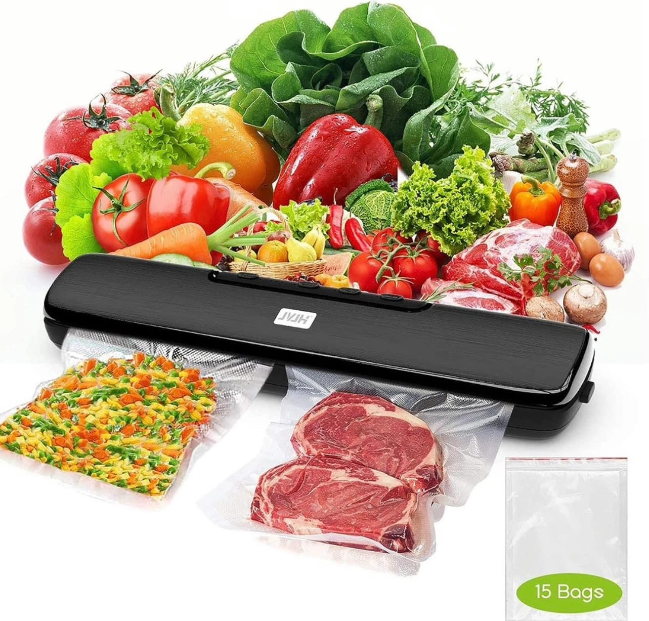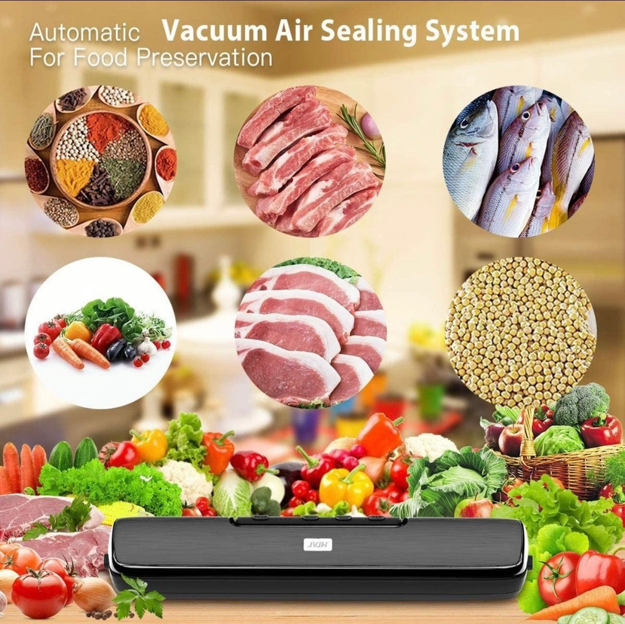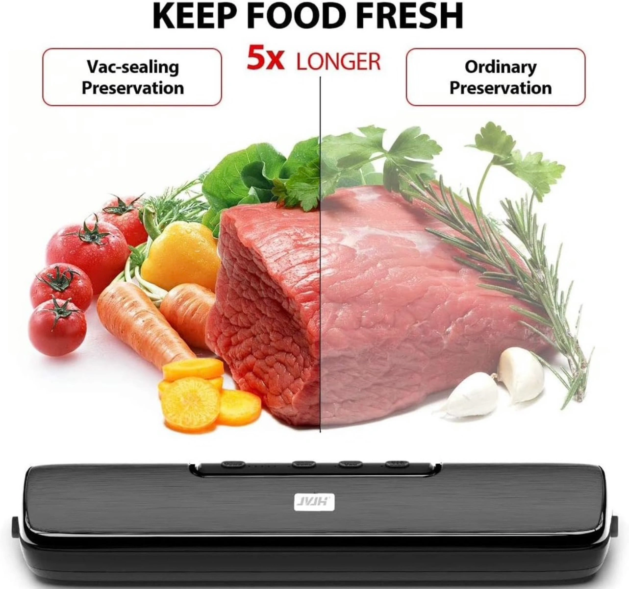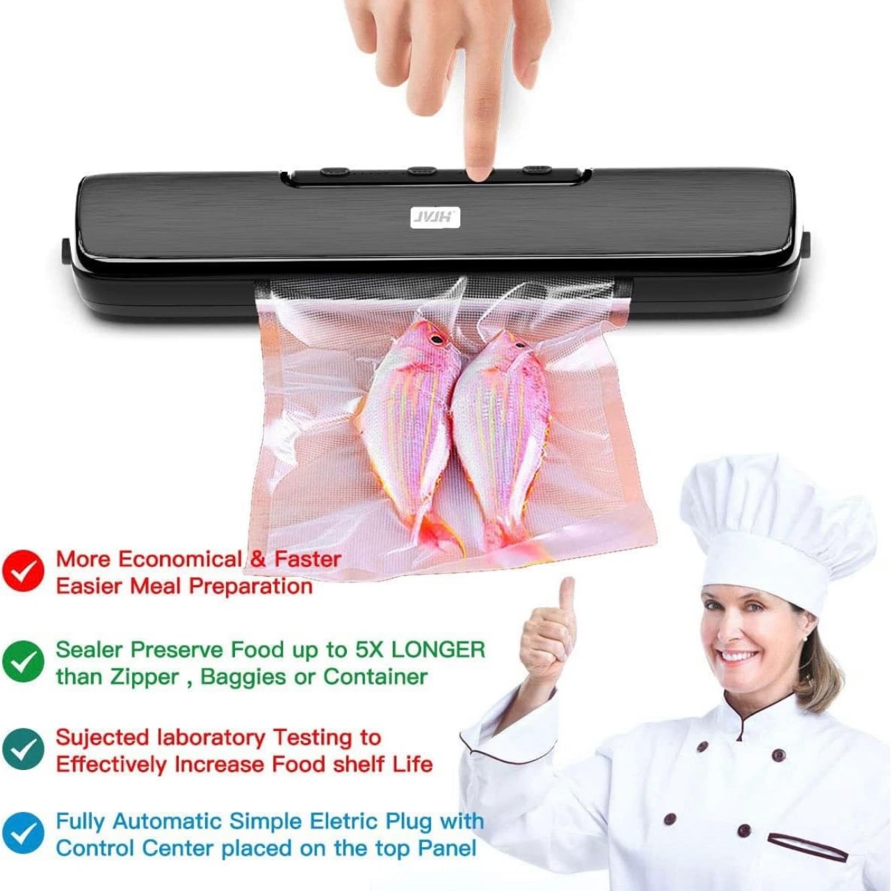 ăSave money and time ă: The JVJH vacuum sealing machine system can keep food fresh for 5 times longer, and the vacuum sealing of food removes air from specially designed bags. Multi layer material heat sealing prevents air and freezing burns, reducing spoilage and food waste. Cooking and meal preparation will become easier, more economical, and faster.