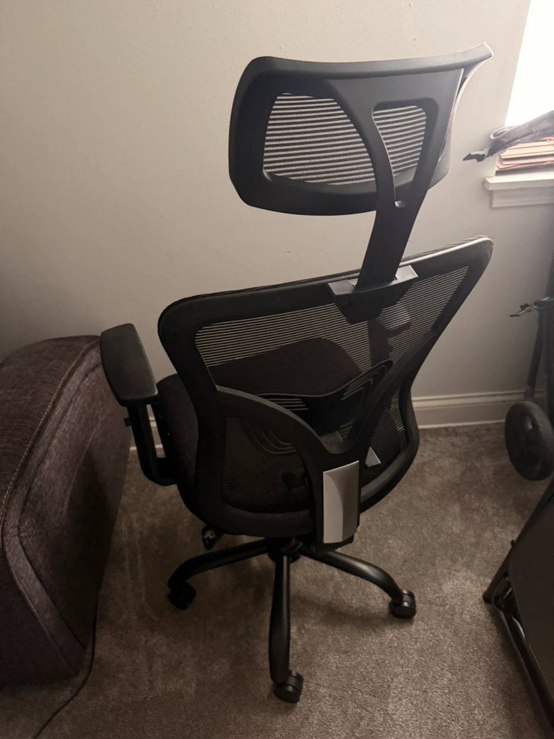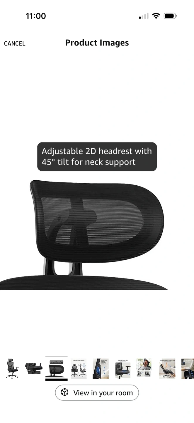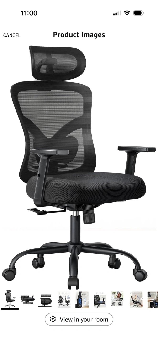 Selling a comfortable ergonomic office chair! It features a mesh back for breathability and an adjustable 2D headrest with a 45° tilt for neck support. The seat has a thick 3.15" contoured cushion for comfort and support. Great for long work sessions!