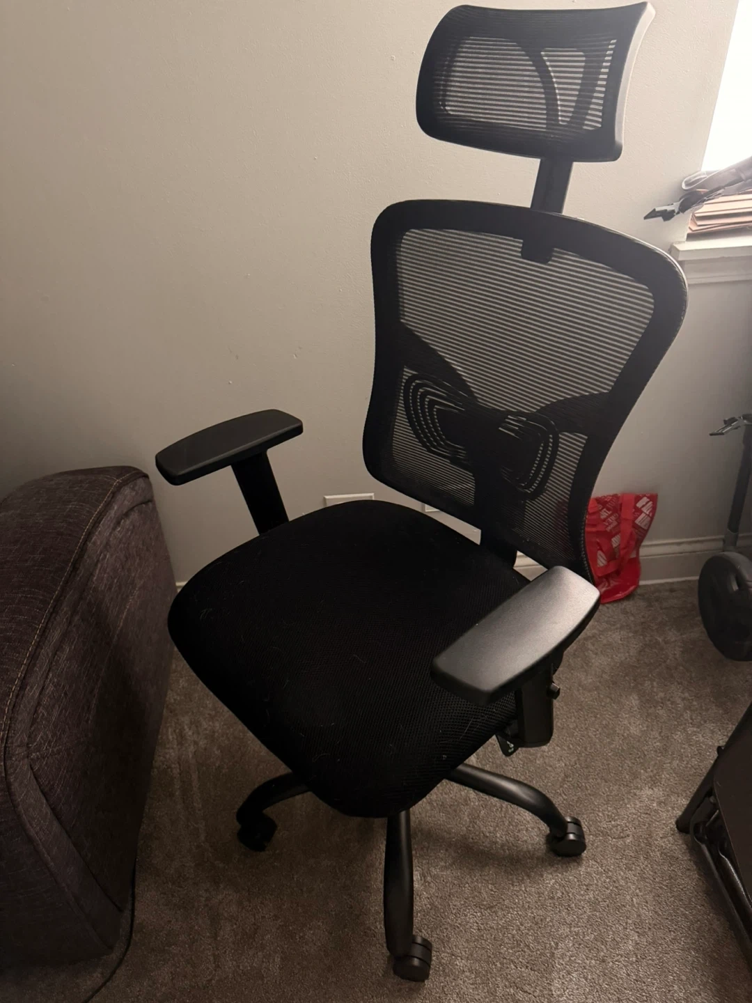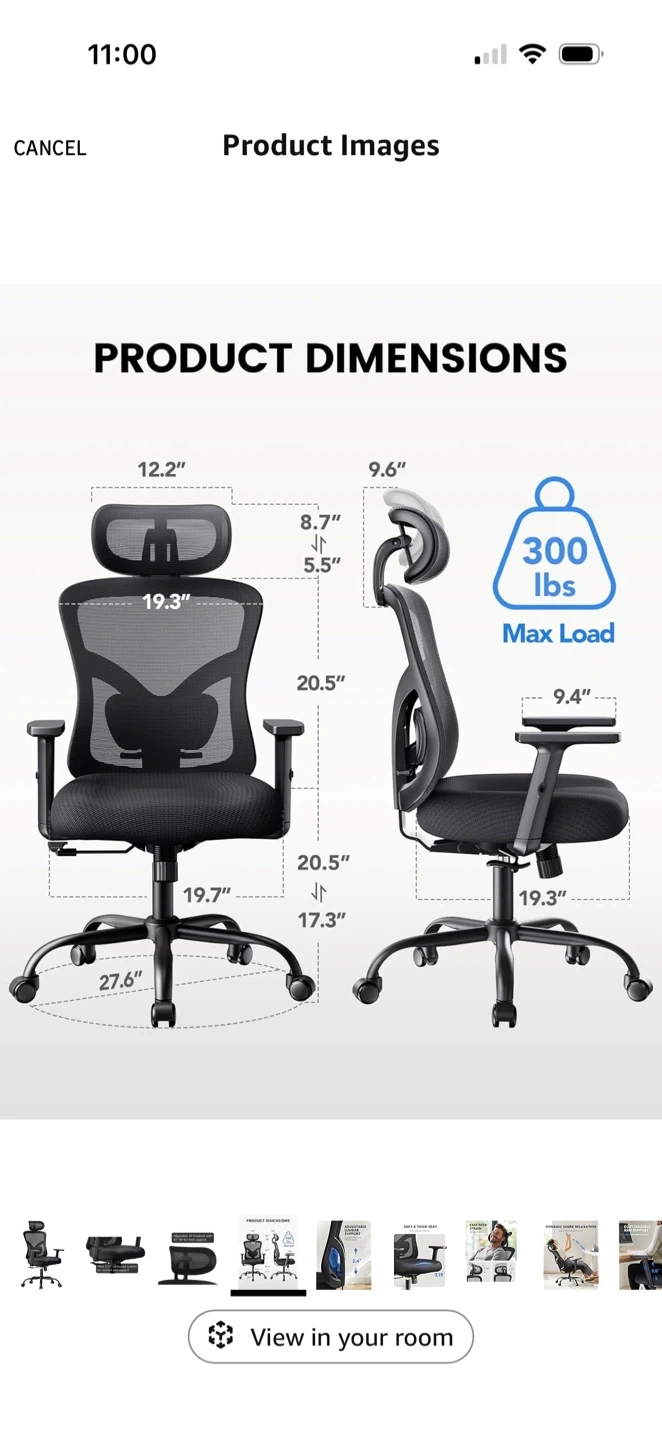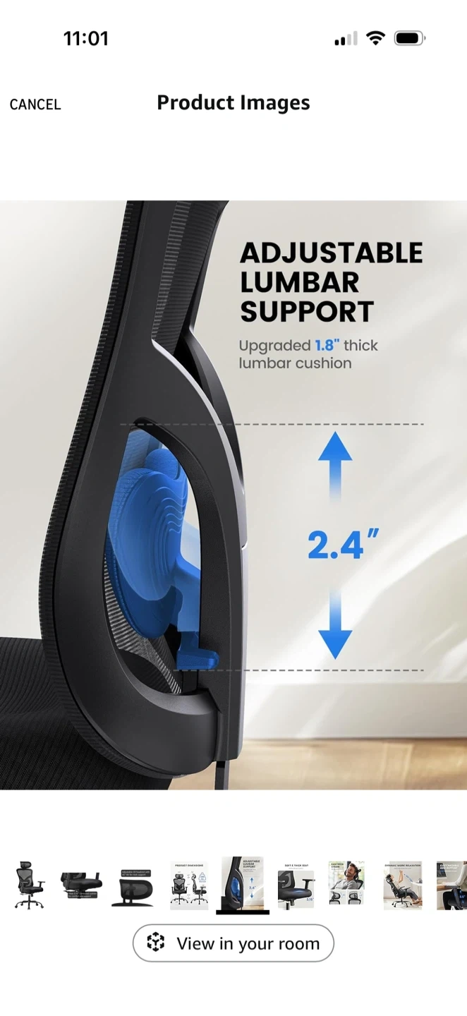 Selling a comfortable ergonomic office chair! It features a mesh back for breathability and an adjustable 2D headrest with a 45° tilt for neck support. The seat has a thick 3.15" contoured cushion for comfort and support. Great for long work sessions!