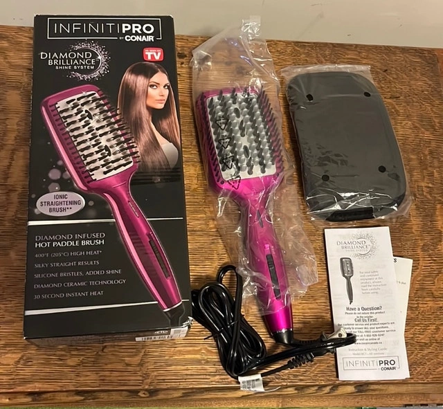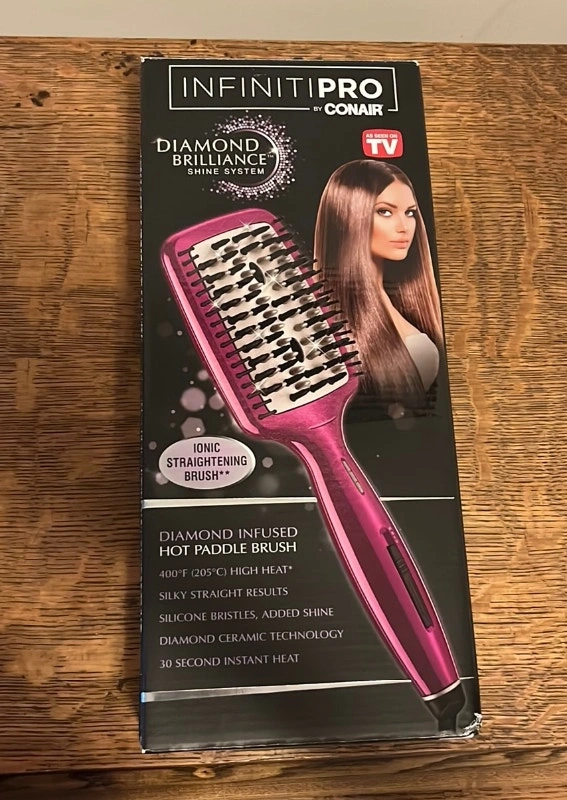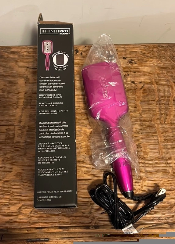 Conair InfinitiPro ionic straightening brush with Diamond Brilliance shine system. This hot paddle brush features diamond-infused ceramic and 30-second instant heat. Used only once as I don't style my hair. It works fine and heats up quickly. Comes with the original box, manual, and a protective pad for your countertop. Selling for $35. Located near the Burlington/Oakville border.